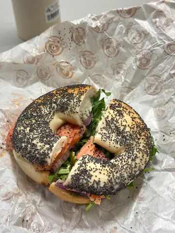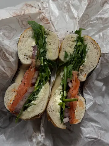 bagel系香港选择好少,口感差异和参差好大,一个plain bagel系普通面包舖标价都大约$20。所以食bagel真系🫠 $83 smokes salmon 店员会问你想室温定焗2-3mins 会脆口啲,虽然我系take away,但都拣左焗一焗,拎上手暖暖地,下次都可以试下即食,睇下口感如何芝麻bagel 口感极度~韧且偏硬身,高咬口,高嚼劲,低继口,所以牙力冇咁好就无谓勉强。手工制之无添加无油低糖,反而有面粉香,芝麻味冇咩感觉,因为比配料香味掩lu Ps 叫左light cream cheese ga!! 烟三文鱼份量适中,偏重油味,欣赏相对唔咸㖞!配料简单有酸豆、紫洋葱、火箭菜,中和左油感,可能light sauce 关系所以有啲草青味😨 不过可接受整体份量刚好,简单又清晰配料,口感好fresh,bagel口感未必受大众香港人喜好,因为普遍香港面包店嘅bagel系走台湾路线,又汤种又成,似面包多啲啰,个人就麻麻地嘅,所以呢种New York style bagel好少见架,所以我支持,会再访试即食系点先😚 …查看更多