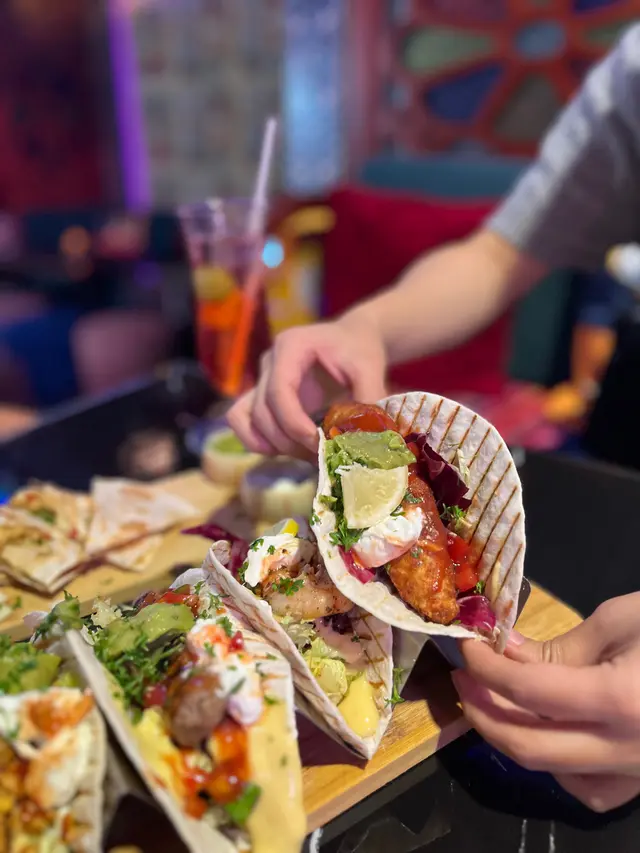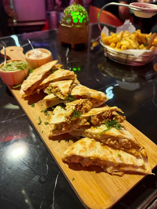 呢一個酒吧餐廳好特別,有野飲有野食。首先餐廳裝修好似好有外國色彩,有油畫,靚靚既燈,仲有木枱,彩色咕臣,雖然座落係一角,但係真係好吸引,所以好易搵到。食物有好多款式,任居選擇。餐廳廚師年紀輕輕已經經驗豐富。 食物味道一流,今晚一試quesadilla,就想比個讚。飲品有Soft drink, cocktail, mocktail,wine,beer .....等等星期五六日黎食下野refresh 下個人係幾好。me time自己黎或同朋友黎都得。或者一大班朋友慶祝都可以。 大家下次可以chill chill 一下聽講呢到有時仲有dancing show添…查看更多