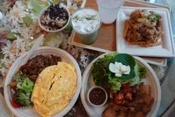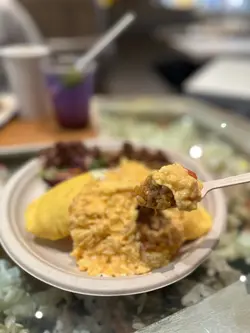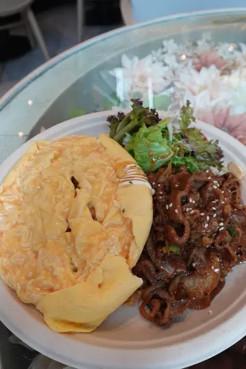 餐厅以「自助式体验」与「花系装修」为主打,开放式空间被满室绿意与干花包围,浅木色桌椅搭配垂吊灯饰,营造出小清新氛围。系柜台点餐后便可自取餐具、静候取餐,全程无须多余交流,I人天堂。🥚烤牛肉蛋包饭视觉与味觉的双重享受——用刀轻轻划开蛋皮,浓郁蛋浆即涌出,覆盖底下的炒饭。烤牛肉份量慷慨,肉质软嫩带炭香,与滑蛋的绵密形成对比。🥩柑橘韩式有骨炸鸡炸鸡外皮酥脆,裹上清甜的柑橘酱,酸甜平衡不腻口。搭配的年糕烟韧有嚼劲,底下仲有大量薯条,诚意十足。🐷酱油黑毛猪白切肉肥瘦相间的黑毛猪厚切,以酱油轻腌后香气扑鼻,入口油脂甘润。建议用生菜包裹,加上大酱、蒜片与泡菜同食,层次分明。🍹士多啤梨红桑子梳打果味清新,气泡细密,是解腻之选🍹软绵绵红豆.豆花鲜奶咖啡虽因温度无法呈现漂亮分层,但豆花滑顺与红豆绵甜意外融合,咖啡醇厚,值得一试。🍰提拉米苏打破传统用左红豆馅料,芝士轻盈湿润,红豆的甜与咖啡的微苦碰撞出惊喜。🌟呢度适合追求安静、不被打扰的独食时刻,食物水准中上,尤其推荐蛋包饭与创意甜品。…查看更多