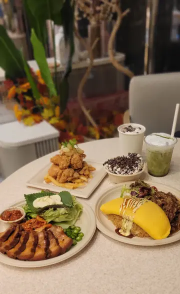 早几日去左太古城行街晚餐食左呢间韩式餐厅Ban Chan以木质简约装潢营造出轻松舒适的氛围秋季仲有红叶布置 整体感觉舒服适合朋友聚会 或者一家人食饭<<Tasty treat combo set $398>>//烤牛肉蛋包饭//蛋包饭绝对系亮点蛋皮柔嫩 切开后蛋汁缓缓流出口感湿润细腻 牛肉入味并不干柴咸中带甜 整体层次丰富 //酱油黑毛猪白切肉配大酱生菜//韩国经典五花肉生菜包厚切五花腩经韩式酱油腌制后烧至微焦外层焦香 内里软淋肥瘦比例刚好搭配新鲜生菜、泡菜、蒜片口感由既咸又辣带少少酸入口满足感十足//韩式炸鸡 蜜糖 (无骨半份) //炸鸡外皮酥脆且不油腻鸡肉嫩滑 带有淡淡牛油香蜜糖涂得均匀伴碟有薯条及年糕年糕软糯 整体份量充足//BanChan & Cook 提拉米苏//提拉米苏口感柔滑 咖啡香而不涩面层铺满朱古力脆脆另外加份了红豆系惊喜整体口感甜度适中 食落有层次//济洲绿茶鲜奶 (冻) //茶香突出 与鲜奶融合后口感顺滑入口不涩 清新解腻系用餐后的理想搭配 //溶化朱古力 (热) //浓郁朱古力香气 口感厚实但不过甜作为餐后暖心饮品最适合不过…查看更多