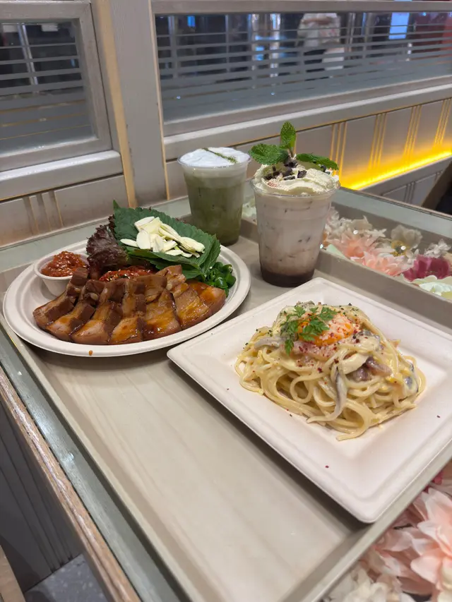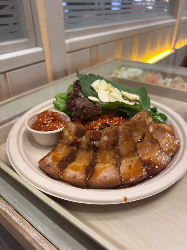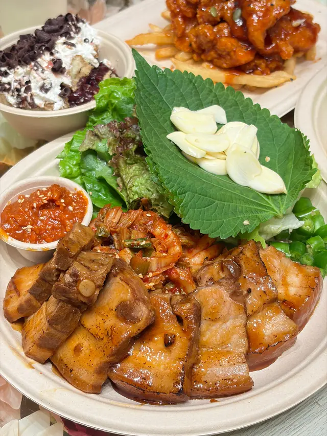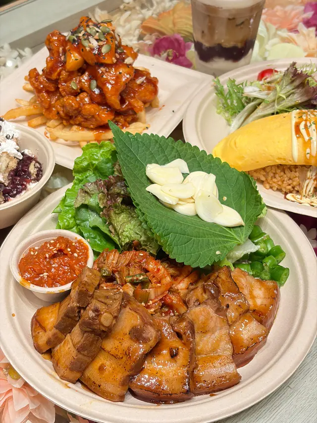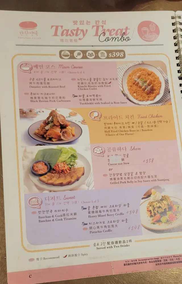 早幾日去左太古城行街晚餐食左呢間韓式餐廳Ban Chan以木質簡約裝潢營造出輕鬆舒適的氛圍秋季仲有紅葉佈置 整體感覺舒服適合朋友聚會 或者一家人食飯<<Tasty treat combo set $398>>//烤牛肉蛋包飯//蛋包飯絕對係亮點蛋皮柔嫩 切開後蛋汁緩緩流出口感濕潤細膩 牛肉入味並不乾柴鹹中帶甜 整體層次豐富 //醬油黑毛豬白切肉配大醬生菜//韓國經典五花肉生菜包厚切五花腩經韓式醬油醃製後燒至微焦外層焦香 內裡軟淋肥瘦比例剛好搭配新鮮生菜、泡菜、蒜片口感由既鹹又辣帶少少酸入口滿足感十足//韓式炸雞 蜜糖 (無骨半份) //炸雞外皮酥脆且不油膩雞肉嫩滑 帶有淡淡牛油香蜜糖塗得均勻伴碟有薯條及年糕年糕軟糯 整體份量充足//BanChan & Cook 提拉米蘇//提拉米蘇口感柔滑 咖啡香而不澀面層鋪滿朱古力脆脆另外加份了紅豆係驚喜整體口感甜度適中 食落有層次//濟洲綠茶鮮奶 (凍) //茶香突出 與鮮奶融合後口感順滑入口不澀 清新解膩係用餐後的理想搭配 //溶化朱古力 (熱) //濃郁朱古力香氣 口感厚實但不過甜作為餐後暖心飲品最適合不過…查看更多