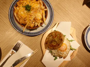 可能因为时间尚早,人唔算多,环境十分适合倾计。之后我地叫左2个set lunch,各自拣左唔同既主菜,一个汉堡,同一个类似risotto 既饭,呢间餐厅同坊间既差唔多,都系以fusion 既形式去令到中式美食变得更有特色。食物方面,一个字,精致,以午餐一百蚊左右既价钱黎讲,佢地既食物算是十分精致,由环境,到餐具和食物上的布置都看得出花了不少心思,味道亦算不错服务方面,整体来说十分有礼貌,唯一就是如果侍应的中文能更流利就好最后,反而奶茶的水准令我有点失望,小弟喜欢饮奶茶,但这种fusion出黎既奶茶有点不伦不类既感觉,奶同茶的味道沟唔黎,这个饮品就不建议喜好传统港式奶茶的朋友了。总括而言,呢餐食得都满意既,除左奶茶之外其他都十分唔错👍…查看更多