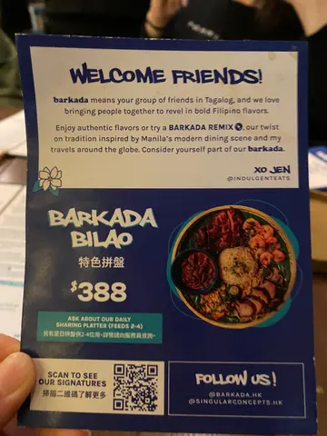 ❝中环发掘新派菲律宾菜!🇵🇭价钱相宜✨菜式香辣惹味🌶️一定要试紫到爆的甜品💜🥳❞平时喺香港好少食菲律宾菜😳今次同朋友发掘到系中环半山行人电梯天桥下面既呢间新派菲律宾菜 @barkada.hk 🇵🇭价钱唔贵! 但环境真系有d焗热…🥵好似冇开冷气….其实主要比佢个紫到好似颜料咁样嘅Ube甜品吸引💜🤣椰子雪糕 米糕烟靭 冷暖交融 再淋上紫色既菲律宾参薯Ube酱 啖啖芋椰香😚🥥菜式大部份都好香辣惹味 不过overall同朋友一致觉得相对普通~虎虾椰子面竟然系刀削面🤣不过一上枱好香椰子味 甜甜辣辣! 另外脆皮五花腩都唔错 配花生酱捞晒d饭都得!😚🥜𝙒𝙝𝙖𝙩 𝙬𝙚 𝙚𝙖𝙩?▪️醋渍吞拿鱼 $128 (3.5/5)▪️香辣虎虾椰子面 $158 (4/5)▪️BBQ烧炸鸡腿 $128 (3/5)▪️花生酱炖菜 $128 (+脆皮五花腩 +$68) (4/5)▪️Ube Biko Sundae $118 (4/5)꧁꧁ ——𝓂𝑜𝓇𝑒 𝒾𝓃𝒻𝑜𝓇𝓂𝒶𝓉𝒾𝑜𝓃—— ꧂꧂📍BARKADA中环阁麟街46-48号地库…查看更多