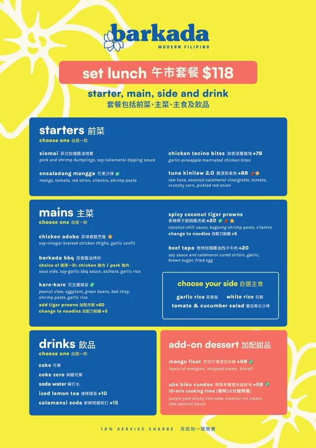 Barkada (中环) 网址: https://s.openrice.com/QrLS0VZSF00 地址: 香港中環伊利近街25號地舖 电话: +852 26630238