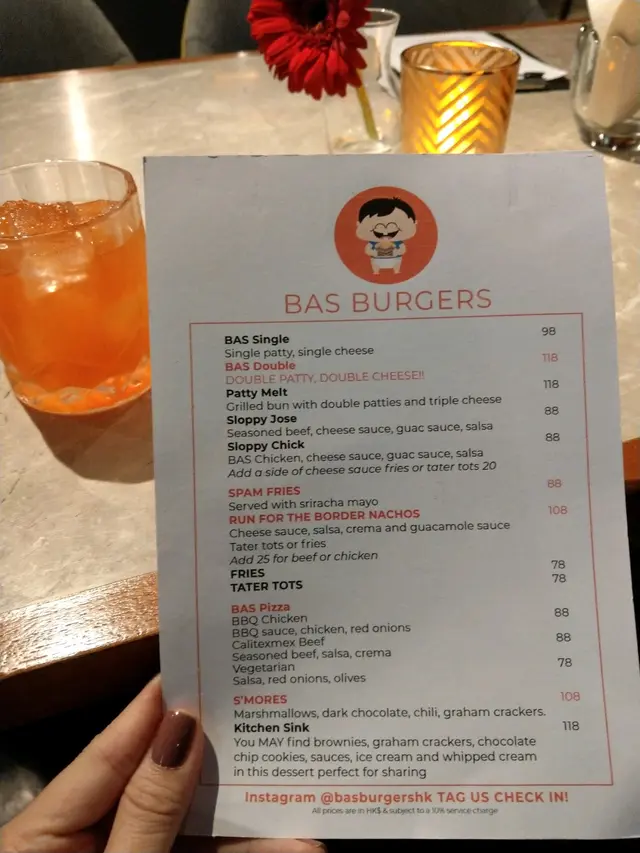 BAS Burgers by Bitters and Sweets (中环) 网址: https://s.openrice.com/QrLS0vMe700 地址: 香港中環威靈頓街52-54號Somptueux Central 1樓 电话: +852 27880103
