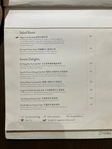 我们于20/2(二)约下午三点四十五分左右到达餐厅,餐厅空间感十足,当时也有不少位置。店员给我们menu,之后出去点餐及埋单。由于没有set,我们单点叫了3样野。❶Tofu Mousse Matcha Cube 豆腐慕丝抹茶蛋糕($60):外表是一个白色正方体,外边是豆腐慕丝,入口丝滑,内有蛋糕层,2层抹茶🍵雪糕层及红豆🫘,口味清淡,吃完也不腻👍🏻❷Lingia First Flush Tea Cake Roll 大吉岭香摘白玉蛋糕卷($58):最令人喜出望外的一个甜品,卷蛋内里的茶cream真的有淡淡的茶味,亦有2粒白玉,cream也不少👍🏻喜欢茶的值得一试❸Impossible Wrap 烤汁素肉卷饼($90):有2条素肉卷饼,旁有沙律菜🥗伴碟。素肉卷饼比想像中大条(因为有些cafe是一分二上碟),素肉卷由左边到右边都有(有些是分布不平均),素肉卷🌮内有洋葱碎🧅,热腾腾吃👍🏻Cafe在铜锣湾就像一个嘈吵的地方内有一个宁静的喘息之地,虽然价钱略贵,但食物质素不错
