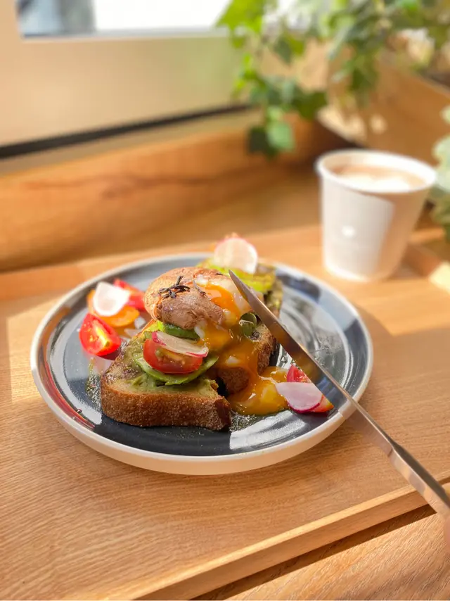 。早餐有bagel, salad bowl, 种类唔算多,都系单点,无set.叫了个牛油果酸种面包配溏心蛋,再加我既至爱焙茶鲜奶 (转oat milk加5蚊)。食品卖相一流,食指大动! 份量唔算大,女仔我觉得介乎轻食至饱肚既份量。牛油果好味,面包配了酸甜的酱汁,不会过咸。溏心蛋用小兜装住,方便进食时漏汁都唔会太论尽。