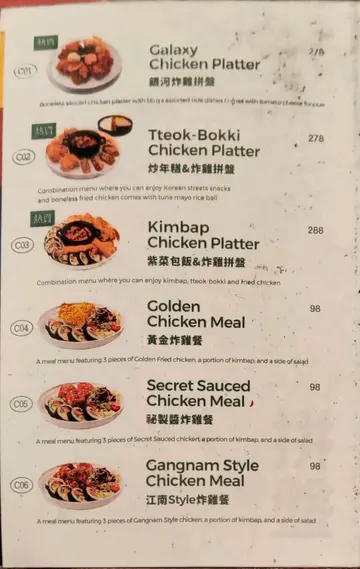 bbq.chicken是来由韩国的炸鸡店,炸鸡的款式多达九种,每种口味都可以选择有骨或无骨,炸鸡非常香脆,肉质嫩滑。这里的菜式选择很多元化,因为除了炸鸡,仲有各类韩式美食,包括炖鸡、炒年糕、紫菜包饭、意粉、刀削面、汤品等,其中牛肉紫菜包饭非常足料,而豆腐辣汤也有大量的海鲜,汤头香辣惹味。忌廉炖鸡有鸡肉、蔬菜、年糕和番薯粉,酱料浓稠creamy,每一口都充满黑松露香气。意大利软芝士沙律用上较少作为沙律配菜的mascarpone芝士,入口细滑,有香浓的芝士味。…Read More