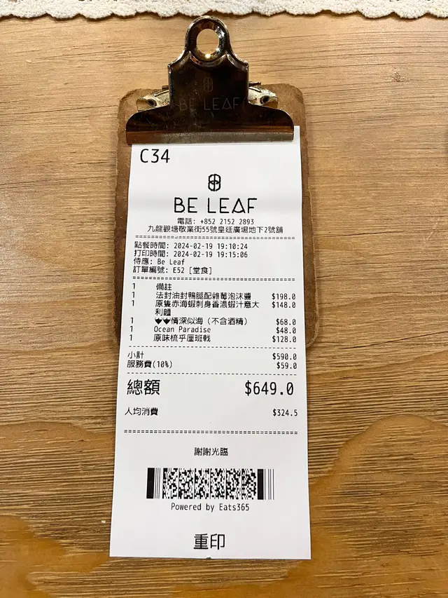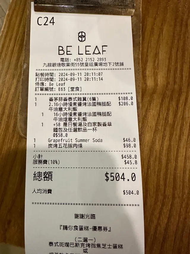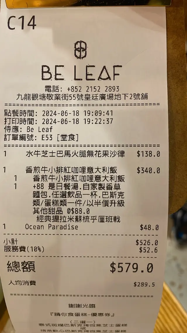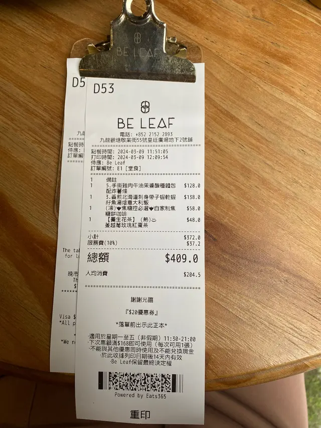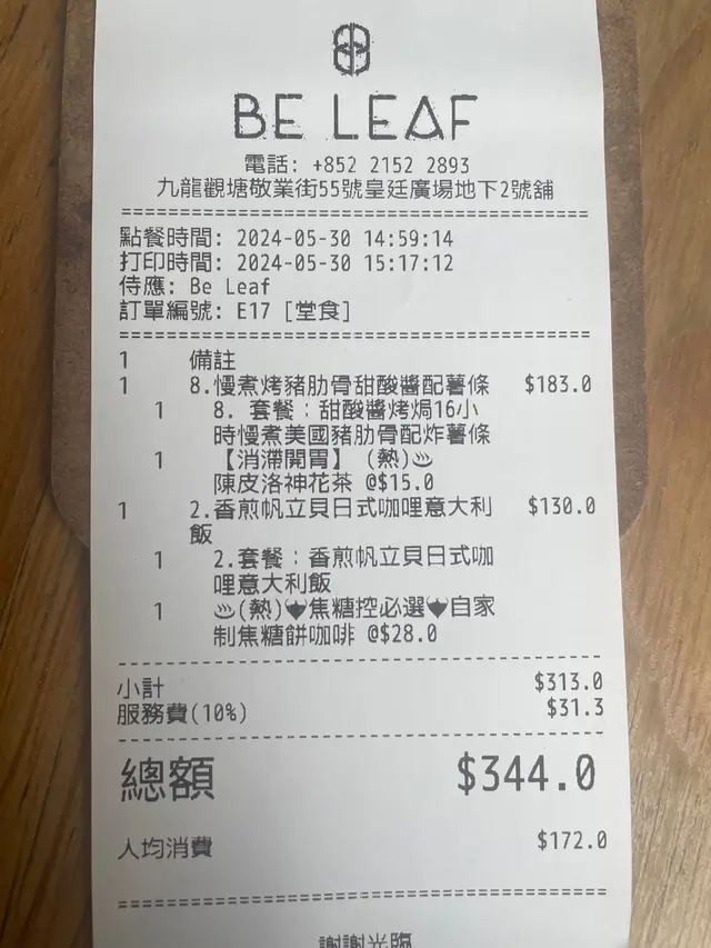 Be Leaf (观塘) 网址: https://s.openrice.com/QrLS0Nzq500 地址: 香港觀塘敬業街55號皇廷廣場地下2號舖 电话: +852 21522893