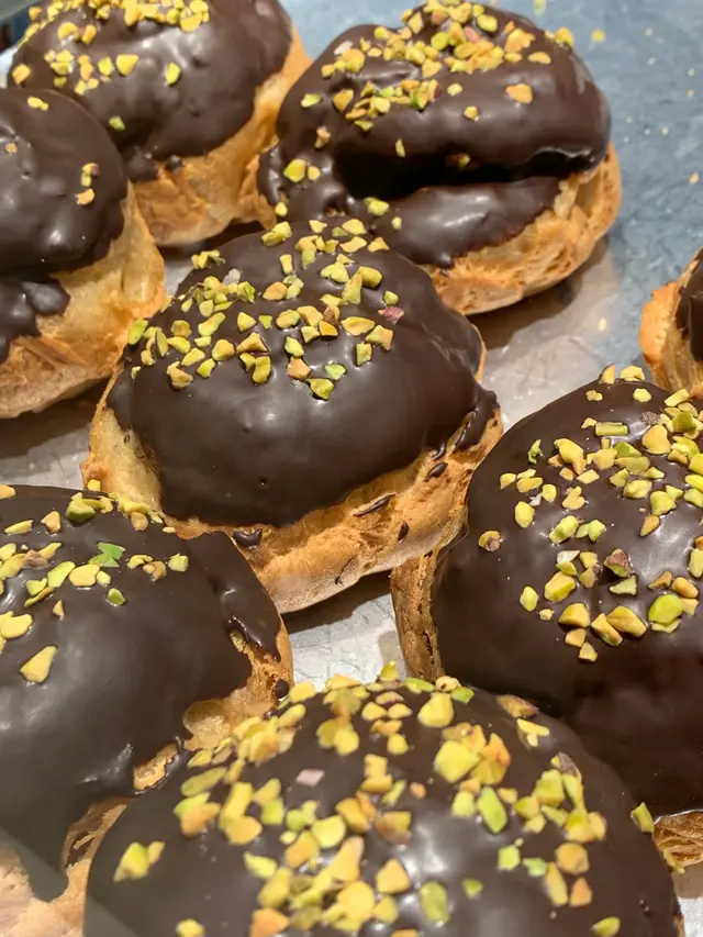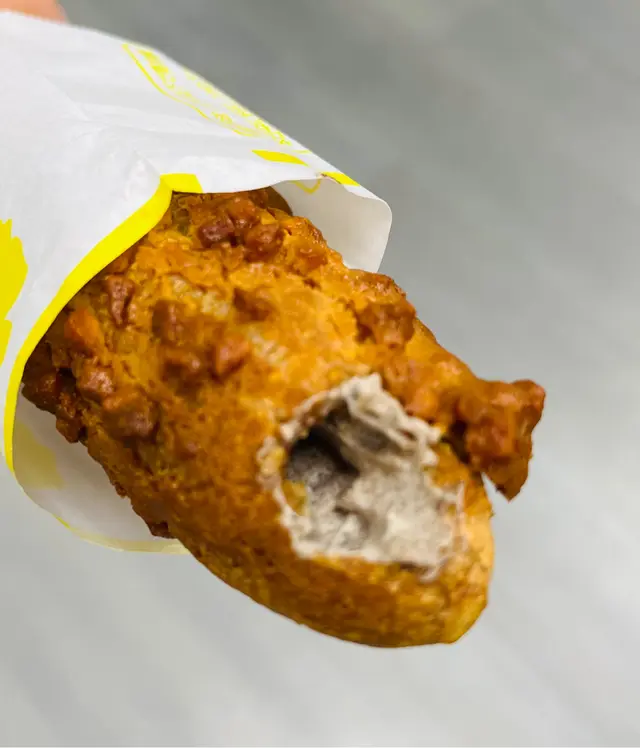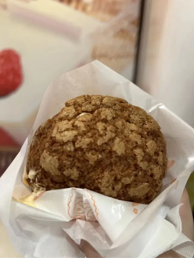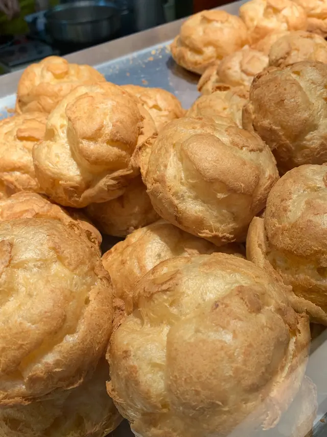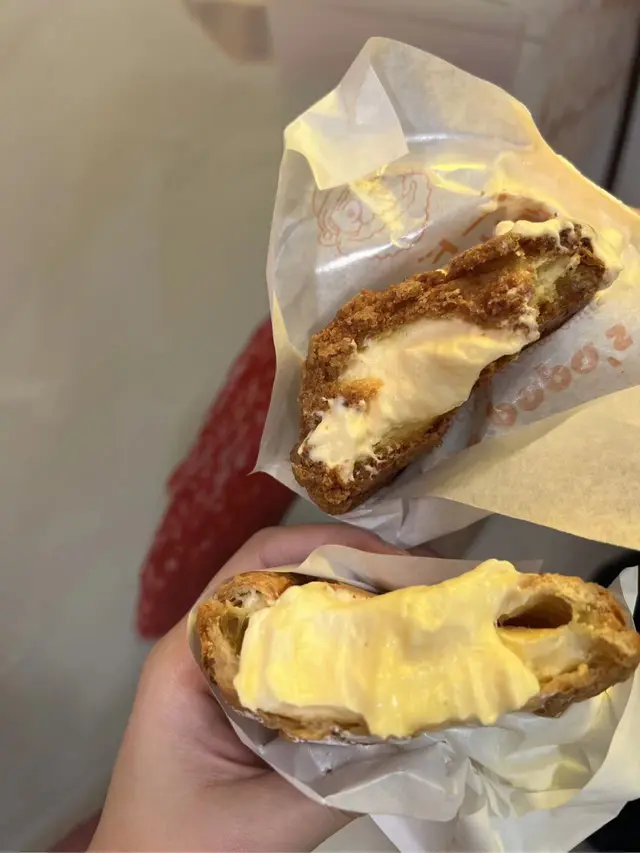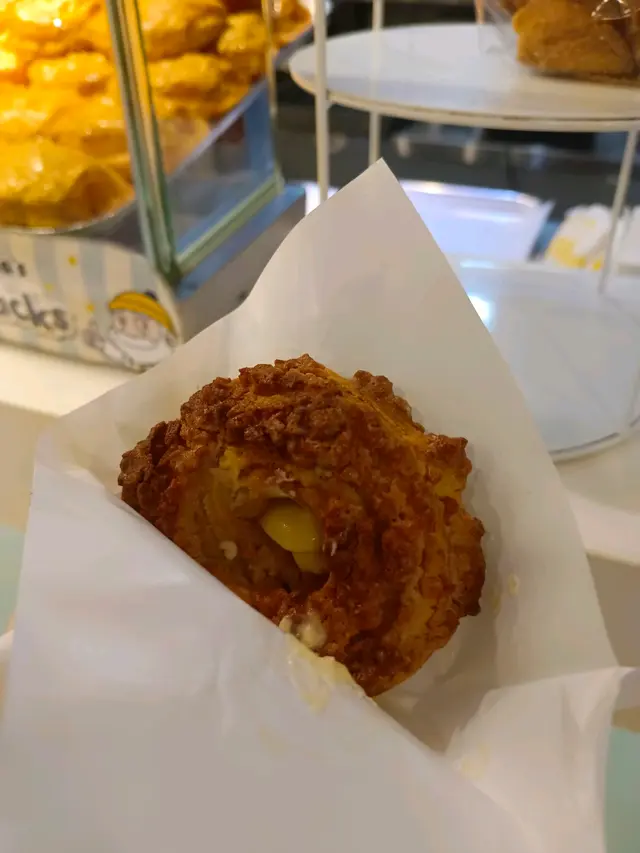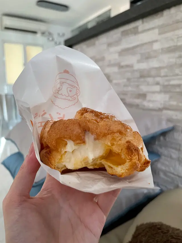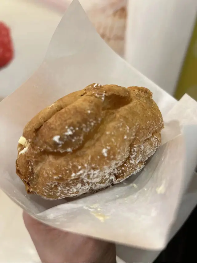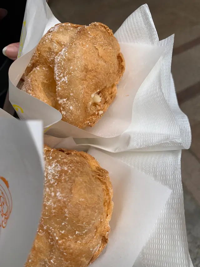 開工經過,見到有人排隊,八卦吓,睇吓有乜好嘢~原來係一間泡芙店,即刻走埋去排隊買返個,其實當時唔算多人。咁啱我點嗰個朱古力脆皮吉士泡芙無現貨,所以店員同我哋講需要等10分鐘即整,我哋OK冇問題照等。前後唔需要10分鐘店員哥哥已經好快手完成,禮貌唔錯,值得讚👍🏻👍🏻講返食物,用聖誕老人🧑🎄包裝紙,包裝着的朱古力脆皮吉士泡芙,外層金黃酥脆的麵衣下上被朱古力包裹著,藏著鬆軟綿密的吉士餡,層次豐富。一口咬下,香甜的朱古力與奶香四溢的吉士互相交融,外皮的酥脆與內餡的綿密形成絕妙的對比。下次一定要試埋其他味~~