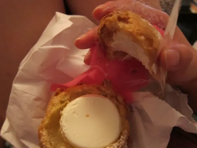 吃完元氣, 肚子尚餘空間, 而且之前又買了bread papa 團購, 就買個泡芙當夜消吧!Bread Papa 最新推出的斑蘭泡芙, 成功嬴得了我的青睞,青BB的顏色異常搶眼,加上小妹我極之喜歡吃來自新加坡的斑蘭蛋糕(美X西餅的免問).這裡的泡芙是即日鮮製的, 外面極脆, 咬下去不期然會發出卡滋一聲,裡面的質地呈一個洞,一個洞的, 空氣感十足, 大愛這個質感,加上泡芙發出麵粉和烤焗的香氣, 令人欲罷不能.中間夾著青BB的斑蘭醬, 只有少許椰汁味和香葉味,對初嘗者是比較易入口的,但奈何小妹是個斑蘭愛好者, 還是希望斑蘭味道重一些.還是較喜歡原味的泡芙, 奶油的輕柔香甜與鬆脆的泡芙比較匹配. …查看更多