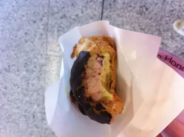 今日路经观塘,见到了久违了的beard papa。回想自他们搬离崇光后,这趟还是首次再次帮衬他们。见到display board 上strawberry chocolate puff卖相不错,于是就点了一个来吃。$18的puff不会有太大的expectation,但岂知原来他跟海马一样打破平嘢冇好嘢的定律。第一口咬下去时我已深深的被那脆朱古力浆和puff皮俘虏了我的心灵。士多啤利的确跟朱古力十分匹配,士多啤利custard的酸甜方香刚好中和了朱古力的苦涩。人说偷得浮生半日闲。若果每日下午我也能吃到如此优质的puff,我也不枉此生了。…查看更多