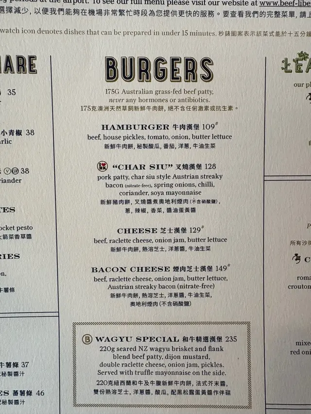 Beef & Liberty (赤腊角) 网址: https://s.openrice.com/QrLS0kvm800 地址: 香港赤鱲角暢達路1號香港國際機場機場客運大樓(禁區) 第7層離港層東大堂7E138號舖 电话: +852 21521966