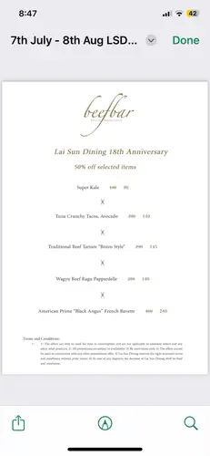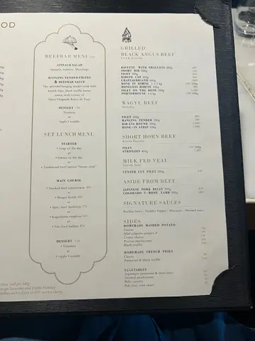 这次来到米其林一星的扒房啦~看到brunch menu 可以无限量吃牛扒真的很划算!看看我都吃了多少吧~前菜还有第二道菜可以无限量refill,但是如果一个course 吃完了就不能refill 了。牛肉塔塔(x2) 很好吃,味道没有很花哨,这样才突出牛的味道,没有筋。吞拿鱼(x2) 平时不太吃吞拿鱼的我也吃了两块,没有腥味!牛油果撒拉(x2)这个我不太喜欢。 和牛汉堡(x9)!!!一定要吃,我一个人都吃了3个!超级香,咬下去爆汁!我爸还说一口吃掉才是真正的美味,一点也不腻,不是那种全都是脂肪的汉堡。和牛酱宽带意粉(x2),想不到意粉居然也很出色,意粉很al dente🥹如果不是意粉很饱我一定会多吃。但是汉堡真的赢了。汤就中规中矩。 来到重头戏牛扒啦,加钱点了Ribeye cap,也是直火炭烤牛扒,外脆里嫩。牛扒的品质不用说了,非常高,牛味重,口感细腻。可以refill 的牛扒是french fillet(x4),没有ribeye cap 那种嫩还有牛味重,但是也是非常优质! 牛魔王记得要算一下时间,我们前面一直refill 大概都2点才开始吃牛扒,如果重点来吃牛扒的话,前面就不要浪费太多时间了。查看更多