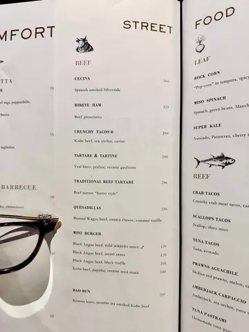 #Beefbar 🇲🇨🥩⭐️摩纳哥的过江龙一星扒房 ,阔别两年,今次同五个朋友星期五食晚餐。餐厅楼底矮,没景观可言。不过食物就非常出色,但上菜有点慢。我们点了 Crunchy Tacos,Ribeye cap,Porterhouse 牛扒,三个Tiramusu,柠檬挞及开心果疏乎厘。Crunchy Tacos 的海胆有点腥,还好吧。牛扒差不多等了40分钟才上菜,但两块牛扒都充满炭烧焦香味,三成熟上(除了边边位有点过熟),Ribeye Cap最出色,有肉味、肉质好腍。配菜点了薯蓉、炒菇、煎芦笋,依旧是候布雄式薯蓉最好食😌甜品依然是 Tiramisu 最好食,里面充满咖啡酒,配上蛋糕及脆片,口感丰富。柠檬挞卖相一流。不过我不喜欢吃太酸的甜品。疏乎厘都不错,不过如果配的雪糕再大嚿啲就更好。人均$1000📍 中环雪厂街16号Club Lusitano2楼查看更多