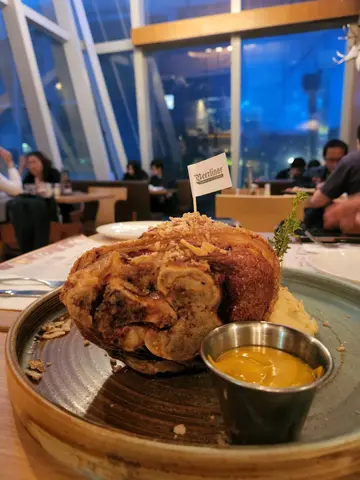 每逢10月都系德国嘅饮酒尽情食肉嘅节日💓系香港都要应下节🤣系朗豪坊顶层有间德国菜酒吧可以拣餐厅外嘅座位 虽然唔系室外但蓝色天幕令环境昏暗无论早晚都好有气氛❤️.🌟德国咸猪手伴酸椰菜及薯菜 $238一上枱就好震撼因为份量超级大够3-4个人share🥳咸猪手外皮好脆仲有层肥膏🙈肉质嫩 🤩酸菜好开胃做伴菜唔会食济👍🏻仲有黄芥末酱点令猪手味道更浓🥰.🌟德式烟三文鱼薄饼 $155饼底好薄脆加左好多洋葱做底🧅甜甜地唔会济三文鱼同火箭菜令pizza颜色更鲜艳🍣三文鱼偏咸可以平衡番洋葱嘅甜味💓.🌟蘑菇忌廉汁牛仔肉丸伴芝士烩饭 $174肉丸超大粒🤩好弹牙 切嘅时候要小心唔好弹左落地😂夹杂少少肥肉 好重牛味😍酱汁好creamy每粒饭粒都有酱包住👍🏻芝士碎增添饭嘅咸香味🧀.🌟脆炸鸡翼及洋葱圈 $85两样都系啱啱炸起好热好脆👍🏻洋葱圈甜甜地🧅系好好嘅下酒小食🍹.📍 Beerliner German Bar & Restaurant (朗豪坊) (旺角)旺角亚皆老街8号朗豪坊13楼05号舖