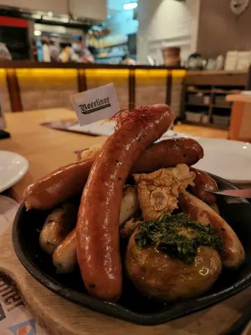 今日行过朗豪坊,突然谂起好少食顶层啲食肆,于是揾一间来品尝。一番比较后,决定试下呢间德国野。嚟食德国野,二话不说当然是先嗌一碟德国肠拼盘啦!有啲好多汁水,一咬就爆浆;有d系芝芯的,口感浓郁;有啲就好普通似超市嘅货色