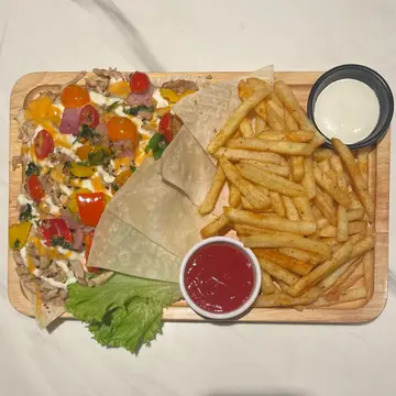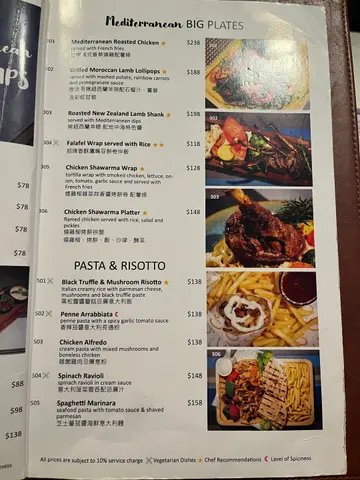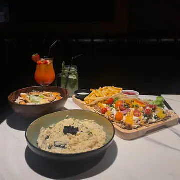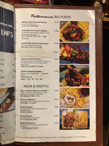 味道:⭐️⭐️⭐️兰桂坊除左饮酒之外仲有好多特色嘅餐厅🫣今次就嚟到兰桂坊呢间地中海菜酒吧餐厅👀❶凯撒沙律 $118沙律超大份 主要用左罗文生菜、巴马臣芝士、脆包粒、银鱼柳及凯撒酱制作而成🥗上枱前已经预先均匀加上凯撒沙拉酱 👍🏻但略嫌沙拉酱太多 令食落有啲过酸🥲表而仲铺满左大量芝士同面包粒🐖面包粒食落微脆🍞整体感觉鲜甜脆嫰 层次丰富🌳❷烧鸡柳烤饼拼盘 $148呢个拼盘份量超超超大😽当中有烧鸡柳、烤饼、沙律、腌菜、薯条😈鸡柳比较干身 表面淋左地中海酸酸甜甜既酱汁🌟用烤饼夹住嚟食就最好不过👍🏻另外薯条炸到火喉岩岩好 睇落呈金黄色💛 仲洒上左啲辣粉 食落更惹味☺️❸黑松露酱蘑菇忌廉意大利饭 $138意大利饭食落都几正宗🇮🇹饭粒比平时食到既更为硬身 咬落带点烟韧🍚黑松露既份量相当之多🍄喷落香气扑鼻 食落都几creamy🖖🏻食材嘅味道完全渗入饭粒当中 而且连素食者都可以食😋MOCKTAILS❹Sweet Melody REG$98呢杯以草莓、香蕉、石榴、橙汁嚟调配🍹当中就以士多啤梨为主调🍓士多啤梨味就最为突出 仲加入左唔少果肉🥰饮落稍为甜咗少少 睇落就好pinkpink 相当打卡able📸❺Virgin Mojito REG$98呢杯就系无酒精版既Mojito🧊用左薄荷叶、青柠汁、苏打水嚟调配🍸薄荷叶令饮落感觉好清新🌳…查看更多