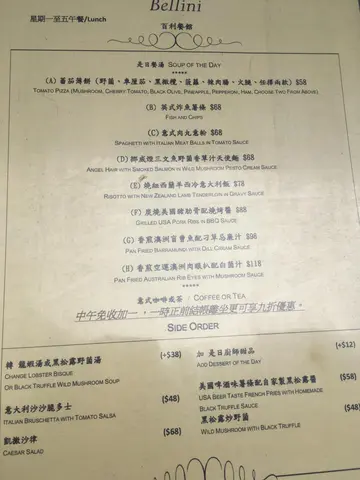 补13/11好耐冇食过西餐,食个汤,主菜,甜品再饮杯咖啡。趁冇乜嘢赶交货,仲唔食等几时?楼面得二十个位左右,唔爆位。本人就比较偏向中午要饭,所以多数会简意大利饭。不过今次呢个要配羊扒。牛扒煮唔好最多过熟干身,如果本身块肉靓,味道影响唔大。羊扒煮唔好,系最地狱。食紫不但止,个阵膻味好似火山爆发咁成碟饭都系,想硬食都唔得。但人总是犯贱。先有个汤同多士。汤系粟米忌廉汤。等左大约15分钟。个饭望落都几古怪,洋葱加西兰花。个汁好似食紧中式嘢咁。饭粒唔太生,中间冇晒白色,但依然系有咬口。羊扒望落都比较熟,只系面层落咗少少胡椒。入口第一啖唔觉好大阵膻味,咬多几下就开始涌出黎,浓郁但唔过份,亦都好快就散发咗。甜口系两小旧芒果味嘅蛋糕,极淡芒果味,亦冇朱古力味。我只能形容为一旧甜嘅蛋糕。都几今人失望。总结: 虽然配撘有啲奇怪,但味道唔错,甜品有啲失望。价钱可接受范围内,可以返转头再食。…查看更多