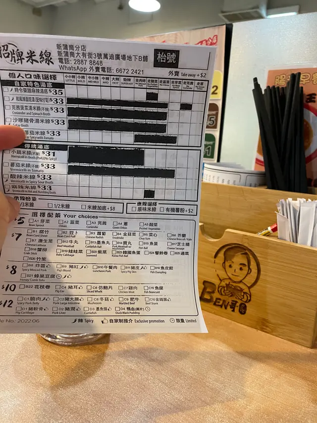 Ben哥米線 (新蒲岗) 网址: https://s.openrice.com/QrLS0gza400 地址: 香港新蒲崗大有街3號萬迪廣場地下B號舖 电话: +852 28878848