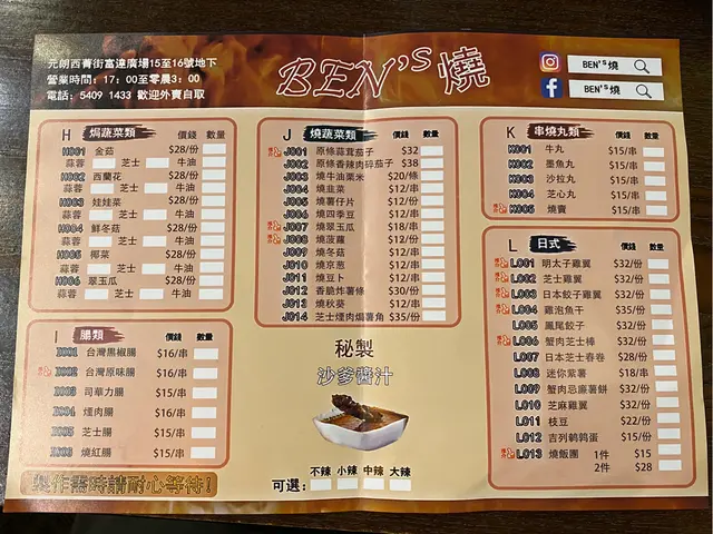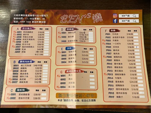 Ben's 燒 (元朗) 网址: https://s.openrice.com/QrLS08TK700 地址: 香港元朗西菁街23號K Plus地下15-16號舖 电话: +852 54091433