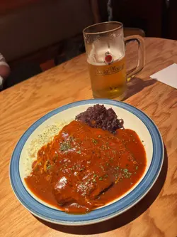 呢一间以德国啤酒作为主打,讲真,德国啤又真系好饮过其他地方嘅啤酒,所以我一直钟情于德国啤,呢一只德国啤酒清爽得黎带有少少甜味,系蜂蜜𠮶种蜜糖,吊住少少回甘,印象之中未喺其他地方见过呢个牌子。呢个意粉系个侍应介绍我试吓嘅,用嘅肉竟然系猪嘅面颊肉,个肉质唔错,比普通猪肉有弹性,估唔到西餐都会用猪嘅面颊肉做材料咁刁钻。块猪面肉都几大块,而且一D都唔薄,都几正几好食。呢间餐厅入面仲有两个几有特色嘅卡位,就系用一个巨型酒桶黎做嘅,打撗锯开,可以比客人坐入去,几过瘾。