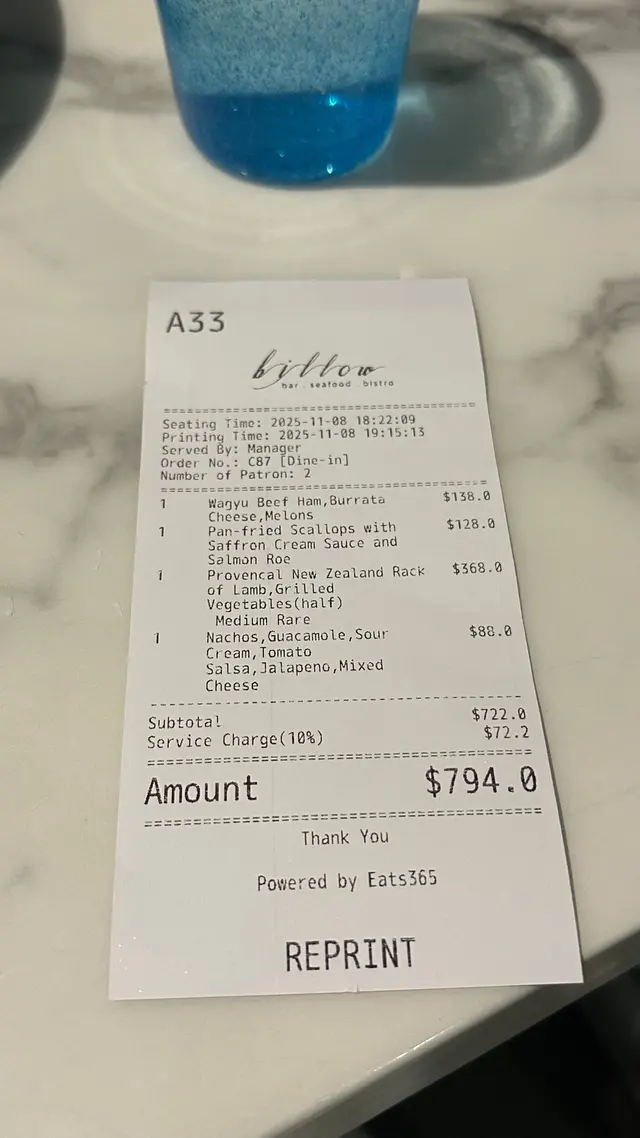 Weekend 想远离市区食饭入到黎大埔Billow 系湖隔离嘅餐厅可惜太晏入去睇唔到日落 黑蚊片都睇唔到个湖🤣餐厅出面有喂食俾啲浪浪猫猫出面环境都好靓 尤其隔离中菜餐个花园 著哂串串灯好浪漫Billow 入去无想像中咁阔落 窗边2人枱都几迫下入面无出面睇落咁grand,可以casual wear2个人叫左2份前菜、1个main、1个side dish 份量好足,所以好够饱前菜叫咗香煎带子.藏红花忌廉汁.三文鱼籽 $128味道唔差,正常发挥风干和牛腿、布拉塔水牛芝士、蜜瓜 $138蜜瓜好清甜、但个Burrata cheese 水牛芝士有啲失望、无味同埋啲质感有少少怪 。Main: 羊架(半份)$368半份都有4块,呢到仲有薄荷啫喱俾你盖左羊嘅骚味Side dish: Nachos $88无谂过咁大份,超饱🤣好多cheese、仲有avocado sauce 好多酱,好多块,睇得出好有诚意,值得食!服务态度好,出面有得泊车…查看更多