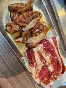 家附近一家不错的烤肉店,一人食or聚餐都挺不错,午市还有免费的小料、饮品放题,晚市须额外加钱。个人比较推荐13号 牛板腱(300g),还配有荞麦茶(热),一个人吃都很足够;和牛那款也不错,就是吃多了有点油腻🤣