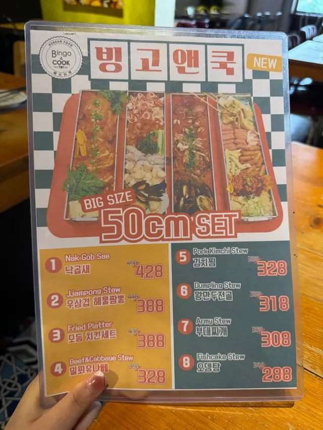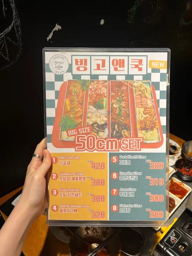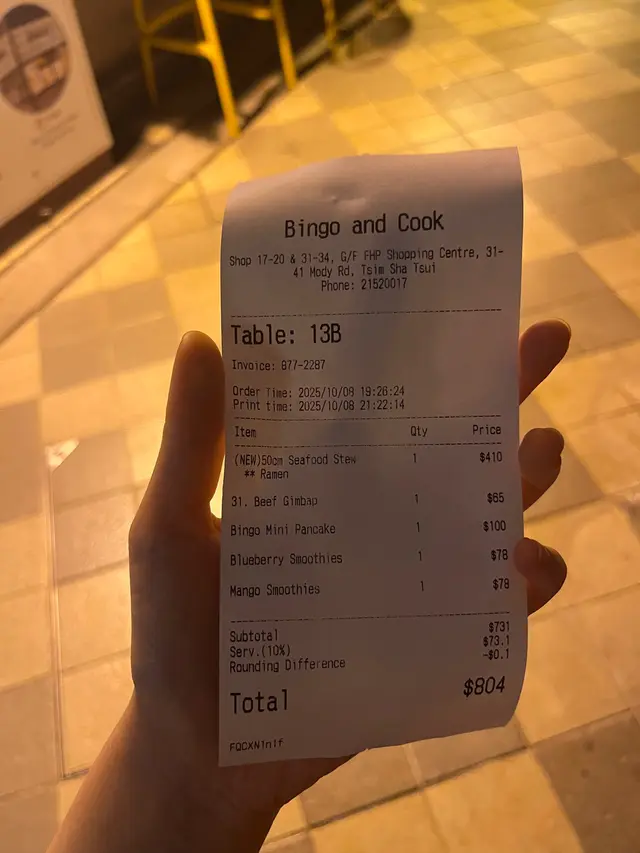 今次嚟到尖沙咀么地道港汇广场嘅 Bingo & Cook,成间店感觉好chill又整洁,入座之后服务好亲切,第一印象已经加晒分😄。呢度最吸睛一定系佢哋招牌 50cm stew!!! Seafood Fishcake Stew,长度真系有50cm,摆上枱超有气势,打卡一流📏。入面用料劲丰富,有虾有蟹仲有鱼糕串,视觉同味道都系双重满足,啖啖都充满海鲜鲜味🦐。最贴心系职员会行埋嚟帮手剪好,方便分食又唔会整污糟枱面,细节位做得好到位✂️。仲可以拣有辣或者唔辣,怕辣嘅朋友都食得安心;钟意刺激嘅就拎辣版,越食越惹味🔥海鲜煎饼都系必点之选,上枱已经闻到阵阵香气,热辣辣咬落去外脆内嫩,材料份量足到见到满满海鲜,每一口都有层次感🥞。边位特别脆,配上啖啖鲜味,食到停唔到口,啱晒一班人边倾计边食🥰Bingo Signature Gimbap 系牛肉芝士味,米饭软糯,卷得实净,牛肉香口而且唔干,芝士微微拉丝又带点奶香,整体平衡得啱啱好🍙。份量够分,唔会太heavy,但够满足感,做前菜或者中段转换口味都啱👍饮品方面 Strawberry Smoothies 清爽香甜,草莓味道天然唔假,冰度啱啱好,食完热辣辣嘢嚟一啖即刻降温🍓。朋友之间分享就梗系要 Grape RiceWine,一大枝上枱够气氛,微甜果香带住米酒淡淡醇香,慢慢chill住再倾计,成个晚餐节奏舒服又轻松🍷。总结嚟讲,呢度出品稳定、用料厚道、服务贴心,价钱以环境同质素嚟讲相当合理,难怪越夜越热闹🐷🐷🐷🐷🐷🐷🐷…查看更多