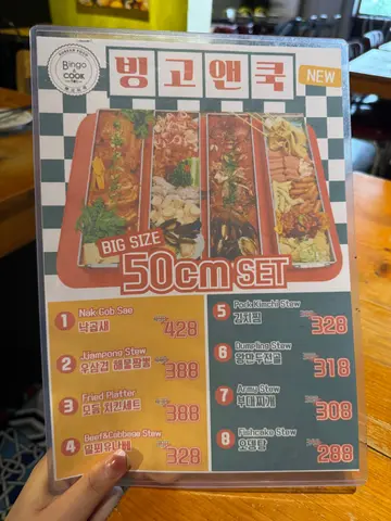 📍Bingo & Cook呢间人气韩国餐厅长期爆场🔥必点嘅超长海鲜锅份量惊人,料多鲜甜,食到连汤汁都唔放过!今次再encore,依然保持水准,大大锅最适合约齐班friend围炉share!🦀50cm 韩式海鲜锅 $380呢个50cm超长韩式海鲜锅一上枱真系震撼全场!成锅铺满霸气海鲜:原只肉蟹鲜甜,大虾爽口弹牙,鱿鱼嚼劲十足,青口同鲍鱼吸尽汤底精华。浓郁嘅韩式辣汤底滚住食,越煮越出味,海鲜嘅鲜甜同汤底嘅香辣完美融合,啖啖都系滋味。份量十足,最啱约齐成班friend share食!🔥🍣牛肉芝士紫菜包饭 $80暖笠笠嘅饭卷包住浓香牛肉同半溶芝士,一啖咬落去芝士汹涌澎湃,牛肉腌得入味,口感丰富~邪恶但好满足,绝对系必点之选!🐥药膳人参鸡汤 $168足料到爆!成锅人参香气扑鼻,饮落甘甜温润,药膳味醇和自然,一啲都唔苦涩~重点系里面嘅鸡件真系超大件,鸡肉炖到软腍入味,一啖汤一啖肉,成个人即刻暖笠笠,好有滋补养生嘅感觉😌🍯蜂蜜黄油炸鸡(半份) $130一上枱就闻到阵阵香甜!外皮脆卜卜,沾满蜜糖同蒜香黄油,咬落去劲脆,入面鸡肉嫩滑多汁🤩甜咸交织好惹味,半份啱啱好,唔会太腻,送啤酒真系一流!🍶青提子米酒 $140一入口系清新香甜嘅青提果味,跟住米酒嘅微醺感慢慢渗出,两种味道平衡得啱啱好~冰凉顺喉,甜度适中,完全唔会有呛喉感😇配住浓味嘅韩式炸鸡一齐食,解腻又清爽,绝对系今餐嘅完美收尾!⭐️好味指数:8.4/10📍 Bingo & Cook (尖沙咀)尖沙咀么地道37-41号港汇广场地下17-20 & 31-34号舖…查看更多