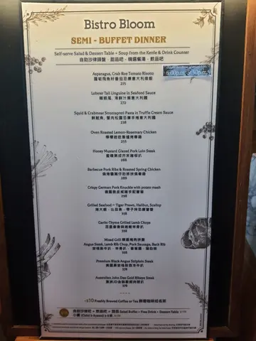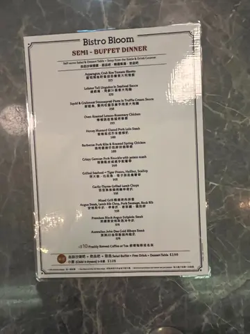 同亲爱嘅细佬庆祝生日尝试呢间位于朗豪坊顶层嘅半自助晚餐原来属于Mr. Steak旗下餐厅每人拣个dinner main,再另外出去自助吧攞嘢食✨自助吧✨沙律款式丰富,有紫椰菜配红菜头、南瓜沙律、泰式香甜木瓜沙律、羽衣甘蓝配粟米、芝士通粉沙律等🥬海鲜冷盘有冷冻虾、青口、蚬肉,不过味道麻麻Cold cuts有三款火腿Cheese platter配提子松饼、面包条、crackers🧀精选餐汤系椰菜花忌廉浓汤,味道唔错几creamy,配香脆面包条好食🥖饮品吧设有提子汁同菠萝汁🍹✨Main✨▶️ 柠檬迷迭香炉烤春鸡 ($255)份量大得惊人🤯两大旧鸡胸同两只大鸡髀自己一个根本食唔晒,满满protein肉质鲜嫩,尤其鸡髀🍗连鸡胸都唔鞋,仲好厚肉调味酱汁okay,好够浓味唯一系觉得佢落得太多不必要嘅橄榄油下面配有薯蓉、芦笋、红萝卜、车厘茄杂菜▶️ 澳洲JD金装谷饲肉眼扒 ($378)Medium rare整到中间保持生生地红润肉质睇位置,有啲偏韧,有啲就几腍🥩整体有新鲜牛味,唔错,但未去到好食▶️ 芦笋飞鱼子蕃茄忌廉意大利炖饭 ($215)睇个样好靓仔,材料丰富钟意佢落咗好多唔同蔬菜,飞鱼子亦落得好足可惜调味太咸同埋比较单一🍅食晒好漏▶️ 烧烤酱猪仔肋排拼烧春鸡 ($288)✨甜品吧✨款式甚多,会不停refill抹茶蛋卷、木糠布甸、蓝莓芝士蛋糕、柠檬挞、四色啫喱、brownie、红枣糕个人最推介系❣️木糠布甸❣️食落系牛奶布甸咁🥛牛奶味香,似食紧固体少少嘅牛奶精粹系配合上面头饼干碎一齐食难怪每次一出,眨吓眼就成盘清咗所以我同屋企人一睺到佢出,就即刻冲出去攞😂抹茶蛋卷干咗啲,其他甜品正正常常啦-自助吧质素比预期好欣赏佢马虎,沙律有诚意而且食落新鲜主菜大大份,不过调味上可以再做好少少🤏🏻木糠布甸系今餐VIP,嚟到切勿错过!服务OK,会不停帮你收走碗碟环境舒服,朗豪坊顶层有其他Bar,气氛好好 (可以享受到隔离live music)性价比唔错,<$400/pax 食晚市semi buffet差唔多…查看更多