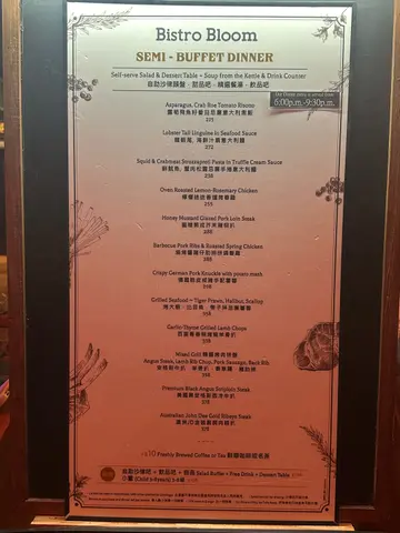 这次到访Bistro Bloom,餐厅主打西式自助餐+主食组合,环境宽敞时尚,是下班聚会或家庭聚餐的好选择。这次点了龙虾海鲜汁扁意大利面和安格斯西冷牛扒,并享用自助吧美食。龙虾海鲜汁扁意大利面:意粉软硬适中,海鲜汁鲜甜浓郁,龙虾肉弹牙,配搭新鲜海鲜和蔬菜,味道丰富有层次,每一口都感受到满满的鲜味。安格斯西冷牛扒:牛扒煎至外脆内嫩,肉味浓厚,油花分布均匀,搭配自助吧多款配菜和酱料,吃得非常满足。自助吧供应新鲜沙律、汤品、甜品等精选小食,选择多元,任食更添乐趣。服务亲切,餐厅气氛轻松,性价比高。…查看更多