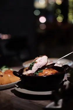近来发现圆方Element进驻了一间越南餐厅 室内设计以五彩缤纷的灯笼营造古色古香的恬静氛围 夜幕低垂时宛如一座漂浮的灯影宫殿 散发浪漫而浓郁的越式情调.越南菜讲究酸甜咸辣的风味平衡 多种特色香料和酱料令每道菜都展现丰富的东南亚风韵 小食中颇喜爱炭烧猪颈肉 猪颈肉以炭火慢烤至油脂微渗 入口外焦内嫩 配以青木瓜沙律 红葱头及罗望子酱 酸甜开胃 巧妙中和油香.主菜推介会安烤乳猪 金黄色的脆皮下包裹嫩滑多汁的肉质 搭配自家制酸菜与新鲜香草 再以拉差海鲜酱点缀 辛香与甘香交织 极具越式魅力 .另一道姜黄烤原条鲈鱼则以炭火烧至外层微焦 鱼肉保持细嫩鲜甜 配合烤花生 生菜 蜜柚与檬粉 清香与果香相辅相成 香气层层递进 .甜品方面 越式浓缩咖啡雪糕融合比利时焦糖饼雪糕的甜美与咖啡的苦香 入口绵滑浓郁 为晚餐画上完美的句点.饮品试了Mocktail系列 Hoi An Cong Chua混合荔枝 青柠汁 接骨木花糖浆及玫瑰花气泡茶 入口芳香清爽 Phu Quoc Sunset 则混搭西柚蓉 青柠及梳打水 再洒上轻烟熏海盐 层次独特 份外醒神 两款各有特色 皆展现热带风情与创意的巧思.总括来说 餐厅的菜式带有地道的越南滋味 主打酸甜咸辣的风味平衡 室内装潢配合古色古香的灯笼与壁画设计 让宾客恍如穿越到遥远的会安古城 是适合庆祝或与朋友足膝详谈的好地方💆🏻♀️…查看更多