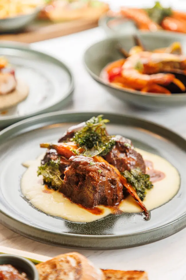 上次约了住澳南的一位朋友,吃过在澳南开的一间东南亚餐厅。今天晚上,到他轮席做东,他说澳南海滨旁,有一法国菜餐厅,可以一试,就应了他的约。Bistro La Baie,开在澳南海滨,面对著澳蓝大桥。餐厅分有室内和户外座位,赏桥景或在室内听著音乐进餐,就悉随专便了。餐厅采用欧陆装修,色调优雅,颜色与海边的色调协调,十分之舒适。一坐下,就想到法国名汤 - 洋葱汤,心想在这里没可能没有。再看餐牌果然是有,我们异口同声都说,法式洋葱汤非常难处理得好,就首先点了,看看这餐厅的功力,去到那个阶层。French Onion Soup 法式洋葱汤,这餐厅果然当得上法国菜餐厅,这汤真的有水准处理得很好。洋葱是灵魂之外,还加了口感细滑的瑞士格鲁耶尔芝士Gruyere Cheese 配在一片多士上再焗,与传统的酥皮,是更上一层楼的滋味。Charred Eggplant Dip 烤茄子沾酱很特别,是涂在酸种面包上吃的一道素菜。烤过的茄子打碎得幼滑,感觉没茄子的口感,带小小的酸味更加开胃,加了初榨橄榄油、红石榴和香草,显得这道素菜,更鲜甜幼滑。主菜点了Rib Eye 肉眼牛扒,配菜是薯条和烤蒜。Medium 这餐厅完全掌握得到,肉身粉嫩没出血水就是成功。而薯条份量也充足,将那烤过的蒜头,涂在肉眼扒上吃更见好味。French Carbonara 法式卡邦尼扁意粉。传统的卡邦尼意粉比较干身,忌廉之外还有蛋黄成分。但这餐厅的法式卡邦尼扁意粉,却用上整只半生熟的流心蛋,伴起来就显得多汁 creamy 和挂汁了。烟肉再配搭忌廉芝士汁,令这法式意粉添上滑溜芝士香味浓烈,个人认为比意式卡邦尼意粉好吃。甜品今晚来个法式橙酒可丽饼 Crepes Suzette,这是法国出名的甜品,软绵绵的可丽饼加金宝脆脆,浸在橙酒里,不太甜而橙酒味香浓,加点鲜橙汁的甜味,令整碟甜品更见出色。饮品点了Elderflower Apple 是一杯由西洋接骨木花、苹果汁、肉桂茶和梳打水混合的无酒精饮品。Cucumber Gimlet 却是这餐厅招牌的鸡尾酒,由青柠汁加毡酒组合而成。完美的一餐法国菜,这餐厅其实还有很多款菜式,例如法式田螺法式田鸡腿等,都相当吸引下次来一定要试试。…Read More