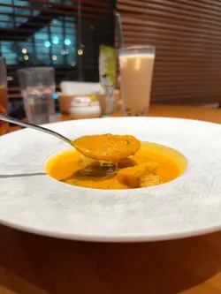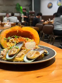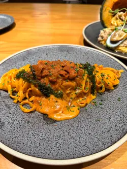 南瓜汤浓稠香甜南瓜味浓🫶🏻入口丝滑✐熔岩南瓜意大利饭超有惊喜,饭粒软硬适中上面超多蟹丝、鱼子、咸蛋黄、海鲜、青口每一啖都劲多𩠌😍😍口感劲丰富好好味✐ 海胆手打意粉