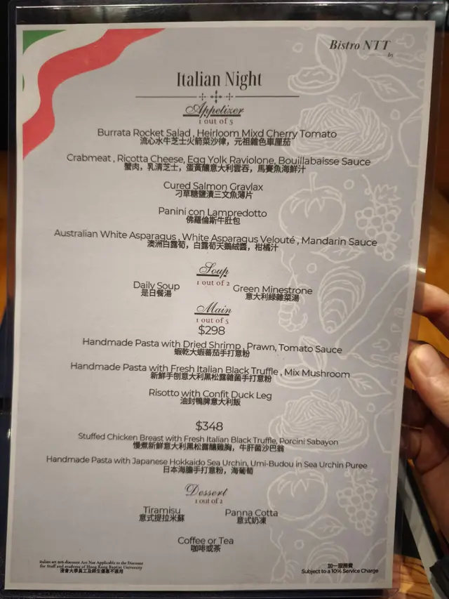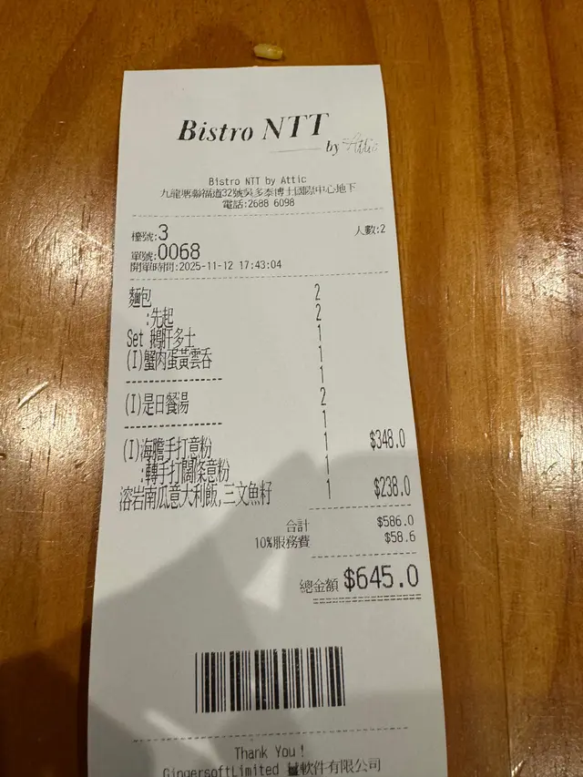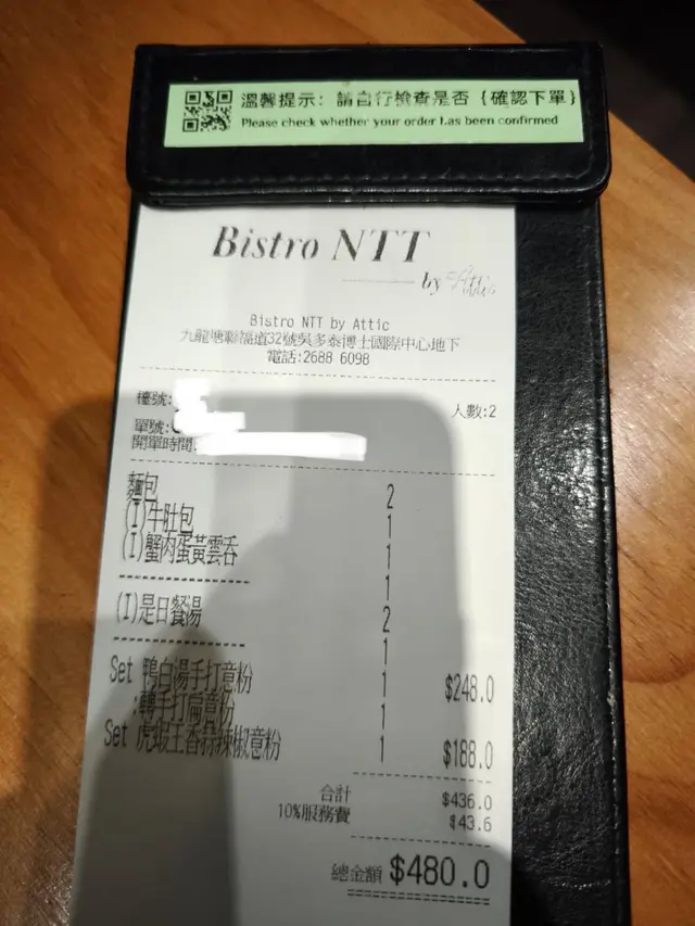 Bistro NTT by Attic (九龙塘) 网上订位即赚Rice Dollars 网址: https://s.openrice.com/QrLS0C1eB00 地址: 香港九龍塘聯福道32號吳多泰博士國際中心地舖 电话: +852 26886098