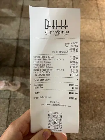 放假前同朋友一齐嚟咗呢间喺 PMQ 嘅泰国🇹🇭餐厅🍽️食午餐🤣BKK Thai Beef Salad 炭烧封门柳沙律配米粉跟特色酱汁:材料包括《Grilled beef salad with assorted vegetables and homemade sauce 炭烤澳洲牛肉、葱、芫荽、番茄、干葱、辣椒》🤩;炭烤澳洲牛肉烤到大约8成熟,肉质软熟好牛味🤣;食之前将自家制酱汁同所有材料捞匀一齐食,加有芫荽嘅沙律菜同埋酸酸甜甜嘅沙律汁,食得好开胃🤣Thai King Chicken Curry 泰皇咖哩鸡配白饭:材料包括《Chicken, Lemongrass, onion, thai garlic, herbs and coconut sauce 鸡肉、香茅、洋葱、香蒜、泰式香草、椰子酱》🤣;咖喱汁非常香滑唔系好辣,有浓郁椰汁味,要嚟捞饭食好正🤣;鸡件亦都几滑🤣Hainanese Chicken with Rice 泰式海南鸡饭:有油饭有汤有鸡,系几高质素嘅海南鸡饭🤣Berry Refresher:材料包括《Fresh berries, Cucumber, Basil, Mint, Honey Cold Brew, Thai Green Tea》,清新几好饮🤣Mango & Passionfruit Smoothie:有几香浓嘅芒果味🤣Thai Mango Sticky Rice 芒果椰汁糯米饭 :芒果新鲜糯米烟靭🤣…查看更多