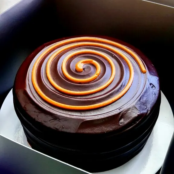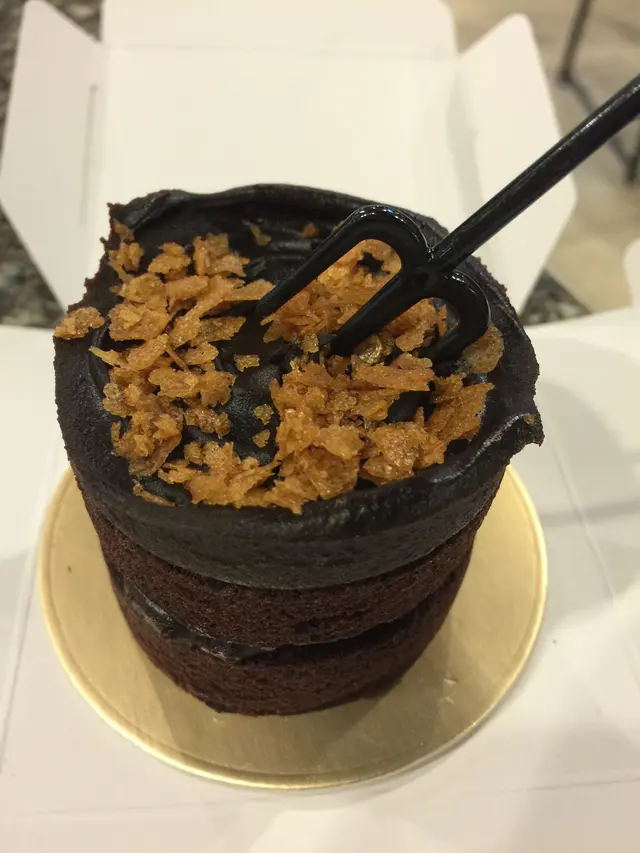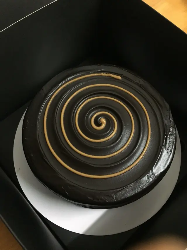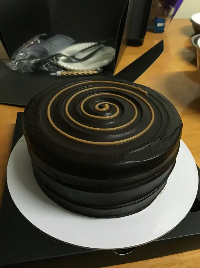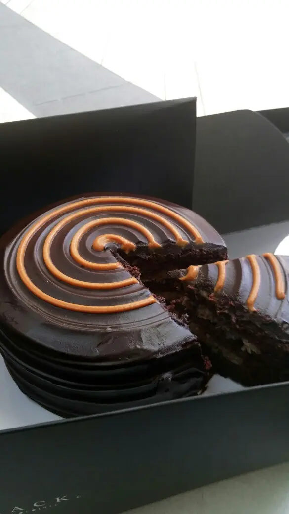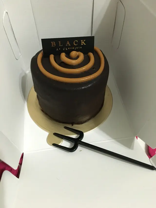 平日$398買一個,現在有兩個,好滾動呀⋯⋯買的是兩張券,可於指定日期前預約取貨,不用一次食兩個,那麼過份,呵呵這公司買的蛋糕款不多,但全都是黑朱古力。今天收工就去取一個'焦糖香蕉朱古力蛋糕',回家跟家人品嚐。型格的黑色蛋糕盒,可以選擇配不同色的粗絲帶,我揀選紫色。沒太多花巧蛋糕,但有種平實簡約的風格盒內底部放了紙碟,魔鬼叉(可選天使匙),金色蠟燭及蛋糕刀開刀了,切開看到香蕉茸夾心蛋糕濕潤,不是乾掙掙,不怕哽喉及食到一地蛋糕碎😂外表:平實簡約香氣:打開盒已聞到雲尼拿及朱古力的香氣味道:濃濃朱古漿及朱古力海錦蛋糕,雙重朱古力享受,有淡淡黑朱古力的甘香,甜味適中。但吃不到焦糖味,香蕉茸在濃厚朱古力包圍下,已不特出。價格:偏貴(6吋$398),但是次買一送一,所以有幸一試…查看更多