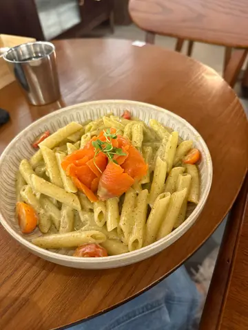 一间太古城餐厅可以同同事一齐chill住吹下水👭🏻,食物好味之余,CP值又高👑,选择真系唔多,而呢间餐厅 Black Bear 🐻就满足晒我哋嘅愿望啦!餐厅装潢以日式木系为主,有唔少黑熊相关嘅小装饰🐾,整体感觉安静舒适,非常适合OL lunch time 过嚟放个break🌿,或者买杯咖啡坐低工作~Menu入面菜式都几丰富,主菜除咗有西式意粉🍝、日式定食🍱外,仲有健康沙律🥗、All day breakfast🫐;甜品有芭菲🍨、自家制蛋糕🍰、Croffle🥐等等,搞到我有选择困难青酱烟三文鱼长通粉上碟摆得好靓好丰富,烟三文鱼份量好足,加入小蕃茄混合酱,清清地唔错🔸草莓忌廉窝夫甜品必点Waffle,香脆酥软,沾上Cream Cheese 味道㫒华咗,甜而不腻饮品:🔸伯爵茶拿铁(冻) 🔸Latte (热)…查看更多