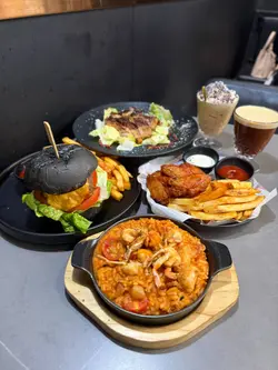 旺角呢间cafe门面连招牌都冇,真系好神秘啊,一于入去食个brunch试吓先😂水牛城鸡翼配薯条有八只几饱满嘅鸡翼,酱汁带点辛辣,都几惹味🐥 侧边配有粗薯条🍟慢煮口水鸡凯撒沙律想食得健康啲不妨可以拣呢个沙律,份量都几多🥗 上面有香脆嘅蒜蓉包同埋烟肉碎🥓 我地仲拣咗慢煮鸡扒嘅口味,鸡扒都几大件。海鲜番茄酱意大利饭配炸蟹仔用个铁板仔上,几有仪式感😙 炸蟹仔喺餐厅嘅新出品,配埋底下几creamy嘅risotto相映成趣。手打牛肉及原只大蘑菇汉堡配薯条整个汉堡包劲高身,每件配料都系好厚身🍔 汉堡扒劲Juicy,系个唔错嘅主食。自家制邪恶芝士酱日式疏乎厘班戟配烟肉店员拎过嚟嘅时候已经见到疏乎厘pancake劲有空气感,入口都几顺滑。芝士酱同烟肉碎略带咸味,配搭埋甜甜地又带有蛋香嘅疏乎厘pancake,呢个咸甜配搭,劲有风味🥞苹果金宝法式千层酥配香草雪糕千层酥真系劲香脆,几香滑嘅吉士酱,真系每一啖都系幸福感🍎 另外面头仲有苹果粒粒配埋肉桂,令到成个甜品都唔会太腻。Nutella Baileys呢度嘅Cocktail都好多选择,我哋试咗呢杯望落似朱古力特饮嘅饮品。入面嘅材料有椰子水、浓缩咖啡 、自家制Nutella忌廉同埋百利甜酒😍 劲钟意呢个配搭,更能带出Baileys嘅香味。泡沫黑咖啡钟意饮斋啡嘅朋友,又有一个新嘅选择,Blackccino底层都系黑咖啡,但系面头有入口几绵密嘅泡泡🫧桂花菠萝咖啡有清雅脱俗嘅桂花味道,加埋酸酸甜甜嘅菠萝,创新嘅配搭令到咖啡更有特色☕️呢间Cafe嘅甜品同咖啡真系好有惊喜,嚟食嘅话一定要叫甜品同咖啡啊😎…查看更多