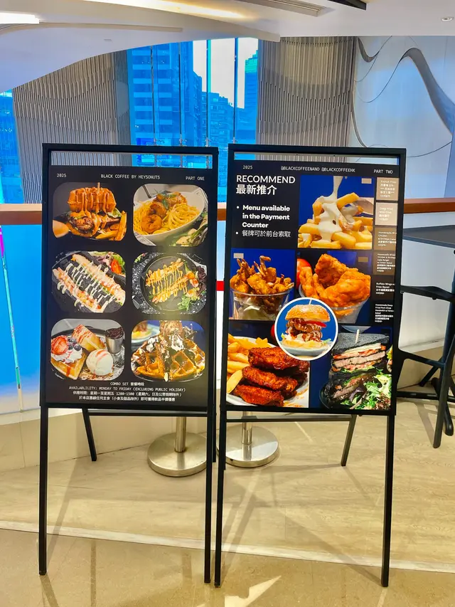 黑色充满住神秘感🖤仲有种型格感觉🖤如果将暗黑风格加落美食到😎又会系点呢?~•~•~•~•~•~•~•~•~•~•~•~•~•~•~•~•~•~•~• ▪自家制手打鸡肉虾饼 ($78)即叫即炸,脆脆✨ 丰富蛋白质即鸡肉🐔 • 虾🦐加埋,冇咁单调😛.▪自家制炸黑炭包猪排三文治 配杂菜沙律 ($92) 虽然黑炭包🥪比较少见,不过黑色炸浆层既炸猪排就更少见 • 更特别🖤猪排Juicy有肉汁🐷三文治馅仲有生菜🥬 • 蕃茄🍅,中和油腻感配既杂菜沙律(加+$22)转炸粗薯条,份量都几多🍟.▪龙虾浓汤意粉配虎虾 ($102)意粉都几挂汁🍝龙虾汤汁浓郁唔会过咸🦞虎虾🦐爽口,剥左壳方便食。旁边配杂菜沙律🥗.▪三重朱古力窝夫配朱古力雪糕 ($98)有甜品食更完美❣️特别系朱古力控,依个要食呀😋窝夫🧇系厚身个种,即整外脆内软🤎配埋朱古力雪糕 • 朱古力酱 • 朱古力碎 • 朱古力粉 • Cream...系邪恶既...但好满足🤪.▪厚泡沫黑咖啡 Blackccino ($44)绵密既泡沫🫧为斋啡增加层次感☕️.▪橙香白桃汽泡咖啡 Orange Black ($52)几岩炎炎夏日,清新FreshFresh💦橙香 • 咖啡都出.~•~•~•~•~•~•~•~•~•~•~•~•~•~•~•~•~•~•~• 🔺免收加𝟏𝟎%服务费🙆🏻♀️ ~•~•~•~•~•~•~•~•~•~•~•~•~•~•~•~•~•~•~• …查看更多