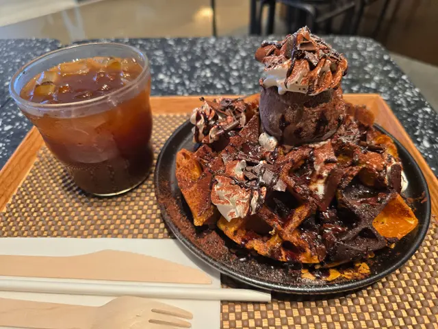 黑色充滿住神秘感🖤仲有種型格感覺🖤如果將暗黑風格加落美食到😎又會係點呢?~•~•~•~•~•~•~•~•~•~•~•~•~•~•~•~•~•~•~• ▪自家製手打雞肉蝦餅 ($78)即叫即炸,脆脆✨ 豐富蛋白質即雞肉🐔 • 蝦🦐加埋,冇咁單調😛.▪自家製炸黑炭包豬排三文治 配雜菜沙律 ($92) 雖然黑炭包🥪比較少見,不過黑色炸漿層既炸豬排就更少見 • 更特別🖤豬排Juicy有肉汁🐷三文治餡仲有生菜🥬 • 蕃茄🍅,中和油膩感配既雜菜沙律(加+$22)轉炸粗薯條,份量都幾多🍟.▪龍蝦濃湯意粉配虎蝦 ($102)意粉都幾掛汁🍝龍蝦湯汁濃郁唔會過鹹🦞虎蝦🦐爽口,剝左殼方便食。旁邊配雜菜沙律🥗.▪三重朱古力窩夫配朱古力雪糕 ($98)有甜品食更完美❣️特別係朱古力控,依個要食呀😋窩夫🧇係厚身個種,即整外脆內軟🤎配埋朱古力雪糕 • 朱古力醬 • 朱古力碎 • 朱古力粉 • Cream...係邪惡既...但好滿足🤪.▪厚泡沫黑咖啡 Blackccino ($44)綿密既泡沫🫧為齋啡增加層次感☕️.▪橙香白桃汽泡咖啡 Orange Black ($52)幾岩炎炎夏日,清新FreshFresh💦橙香 • 咖啡都出.~•~•~•~•~•~•~•~•~•~•~•~•~•~•~•~•~•~•~• 🔺免收加𝟏𝟎%服務費🙆🏻♀️ ~•~•~•~•~•~•~•~•~•~•~•~•~•~•~•~•~•~•~• …查看更多