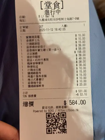 尖沙咀呢间串烧店真系十分惊喜!市区中既串烧餐厅选择好多,但尖沙咀既Blibarla一定会再回访-餐厅座位好宽敞,有沙发座椅,仲有一个好大嘅萤幕,播紧K哥MV,我相信如果有啲体育赛事,或者足球比赛嘅时候,餐厅气氛一定超级好!-串烧方面,首先好欣赏佢哋蜡烛一直热住上菜后既串烧,确保食物到口既时候都仲热,串烧慢工出细货,最平$10就有一串!烧菠萝10分Juicy,就算系简简单单嘅一串盐烧鸡腿肉,但食得出师父烧烤嘅功架-推荐大家蒜蓉烧珍宝生蚝🦪,做紧特价买一送一,$58就有两只巨大嘅蚝,蚝汁多到几乎满泻,蚝肉嫩滑,食咗一半先等于平时出边串烧店嘅size,爱蚝之人一定会忍唔住食多几只!-不过最令我估唔到嘅系餐厅最出色嘅系古法窑鸡!原只鸡窑烧😍😍大量肉汁😍😍配上独家配方调味,成只鸡好惹味同Juicy!不过温馨提示,大家最好一坐低就落单,因为窑鸡需时,而且我仲见到餐厅有做窑鸡外卖,好多人专程黎外卖鸡翻去食🤣🤣 我相信呢间串烧店卖既古法窑鸡应该系尖沙咀名物🤣🤣🤣…查看更多