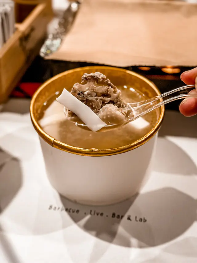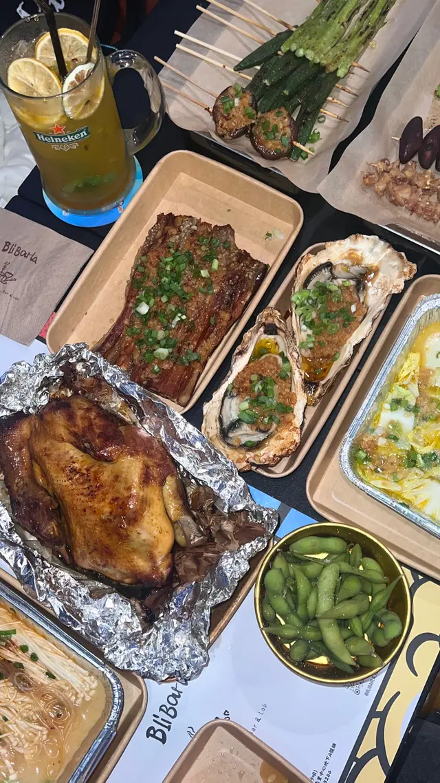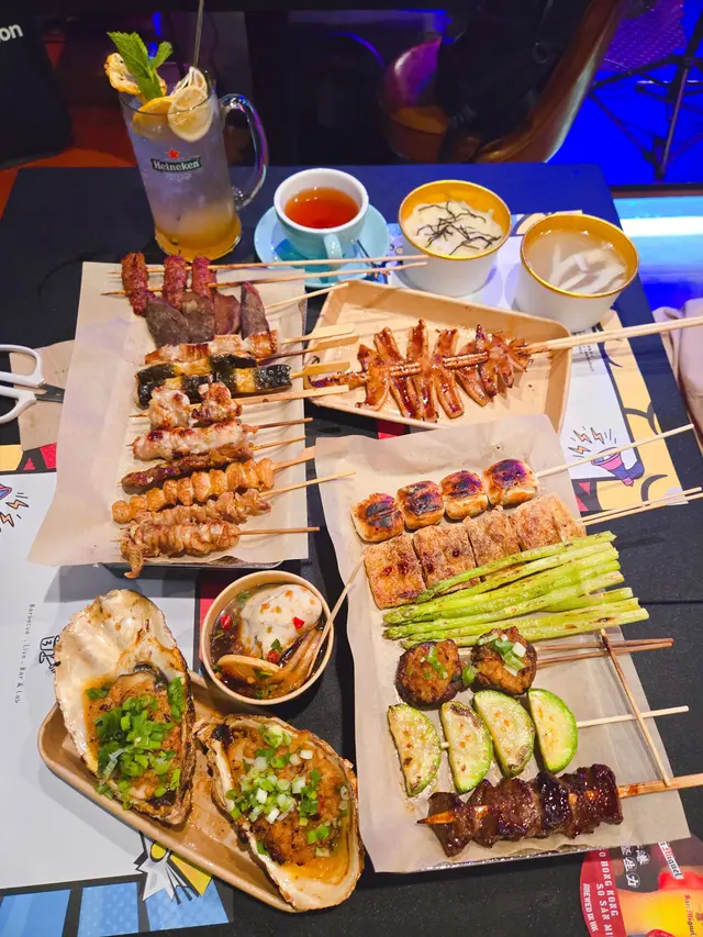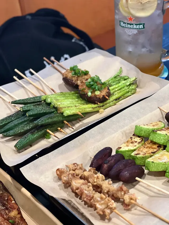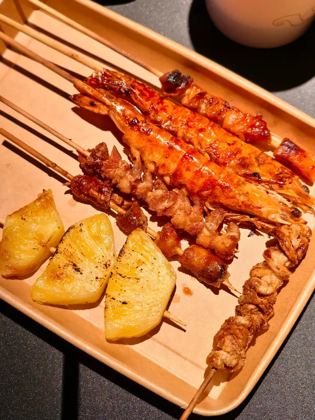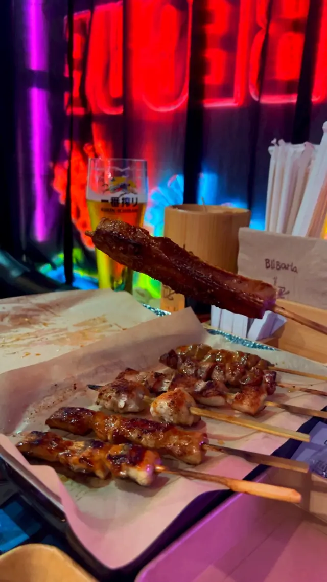 成日覺得尖沙咀既串燒店普遍價錢都吾平,但早排朋友介紹我去一間叫 Blibarla,話佢性價比極高,平到好誇張,最平$10就食到串燒。晚市環境都有心水位揀,有高枱亦有大梳化,坐得舒服之餘,仲有可以聽住輕鬆音樂,收工後去坐低食下串燒,chill一chill真係好正。.蒜蓉燒原條茄子 $38茄子燒到軟腍,入口即化,蒜蓉香味勁濃,仲保留到蔬菜既甜味,成條份量都幾足。.唐揚魷魚鬚 $38真係實實在在既魷魚鬚,炸到金黃香脆,咬落仲有彈性,忍唔住又encore左一次。.熔岩炸蝦球 $38外皮薄脆,一咬入面既汁即刻湧出黎,熱辣辣又鮮味,要小心吾好一次過咬太大口,否則真係會辣親。.鹽燒雞中翼 $20簡單既鹽燒突出雞肉原本既香味,皮微脆,肉質嫩滑,岩晒當小食慢慢送酒。.豬骨濃湯烏冬 $20湯底香濃吾膩,烏冬滑溜彈牙,$20黎講真係抵食到笑。.炭烤吐司 $10吐司燒到金黃香脆,表面微焦,入口酥化,好適合用黎配返d串燒汁一齊食。.夠茜汁燒牛肋肉 $28牛肋肉嫩中帶嚼勁,醬汁係芫荽汁,味道特別,中意”茜”既人一定會岩。.汁燒牛肋肉 $28帶甜味既燒汁同牛肋肉好夾,肉質juicy,食落幾滿足。.蒜蓉燒冬菇 $10冬菇吸滿左蒜蓉汁,入口多汁香濃,價錢仲只係$10,冇得輸。.孜然羊肉排 $38孜然香味同羊肉味結合得好好,孜然味濃但吾搶味,肉質吾韌,咬落夠口感。.香燒翠玉瓜 $10翠玉瓜爽口多汁,燒得岩岩好,仲保留到蔬菜既清甜。.烤日式番薯薯仔 $10外面帶微焦香,內芯粉糯香甜 .鹽燒雞腿肉 $15雞腿肉啖啖肉,鹽燒令外層香脆,肉保持嫩滑,性價比高。.汁燒大蝦 $10$10可以食到成隻大蝦真係勁抵,燒汁帶甜香,蝦肉厚實鮮味。.鴨屎香檸檬茶、鳳仙起舞 $38兩款飲品都好有特色,用啤酒杯盛住,份量大又襟飲。鴨屎香檸檬茶茶味香濃,檸檬令味道更清爽;「鳳仙起舞」係菠蘿梳打,酸酸甜甜,食完串燒飲一啖特別解膩。…查看更多