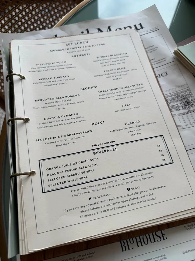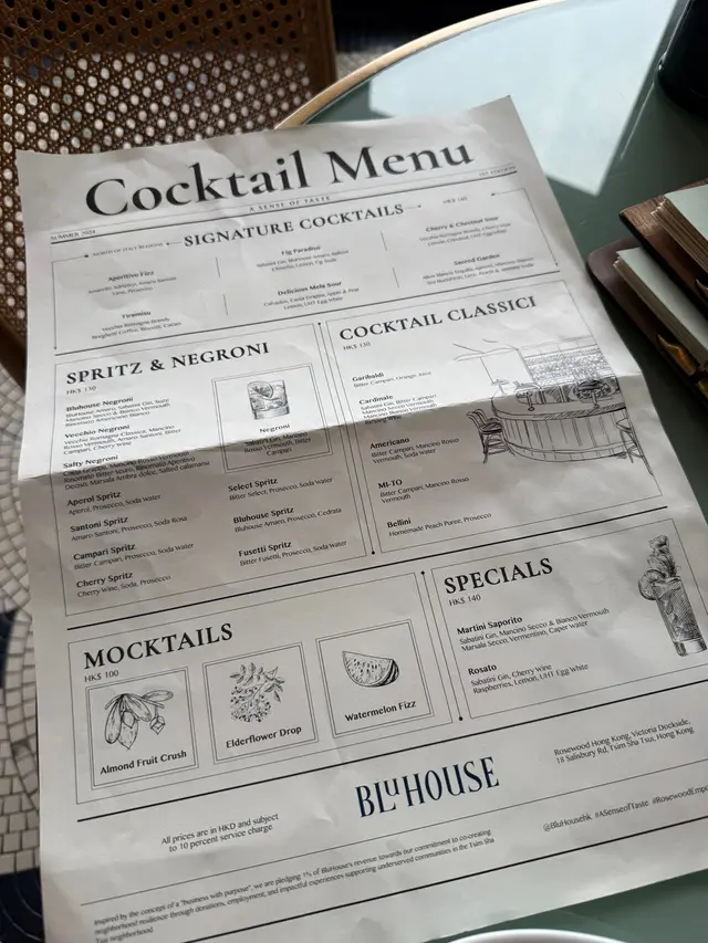 BluHouse将意大利正宗街头风味带到光线明亮开扬的餐厅,以热闹欢乐的气氛衬托地道滋味美馔。客人可以围坐于木制大餐桌旁或坐在户外阳台,一边细味新鲜冲泡的香浓咖啡,品尝精心烹调的意粉、意式烤肉、方型罗马薄饼、精致糕点和意式雪糕,一边欣赏维港的迷人景色。