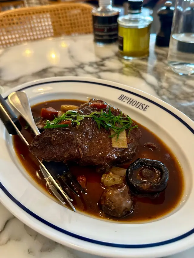 最近去咗 BluHouse 食晚餐,整体体验非常满意。餐厅环境气氛好舒服,服务细心,节奏拿捏得啱啱好🙂↕️头盘点咗 Vitello Tonnato,牛仔肉切得薄又嫩滑,配上吞拿鱼酱味道平衡,带少少酸咸味,好清新。Polpo e Olive 嘅八爪鱼煮得啱火,质地软腍但保持弹性,配橄榄同少少酸汁,非常开胃🤤主菜试咗两款薄饼:Guanciale Pizza 香气十足,烟肉油香渗晒入饼底,边位薄脆中间烟韧;Quattro Formaggi 浓郁芝士味层次丰富,咸香但唔腻,芝士控必试🍕最后嘅 Tagliolini al Tartufo 系亮点之一,松露香气扑鼻,面条弹牙,酱汁收得滑而不腻,味道非常出色🍝整体水准高,食物质素稳定,价位中上但以用料同味道嚟讲相当合理,会想再去🥰
