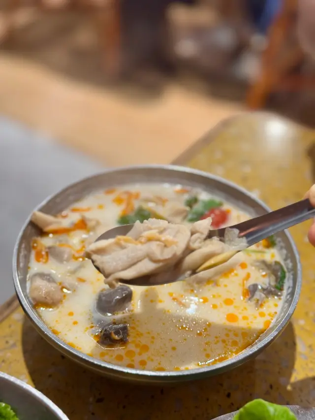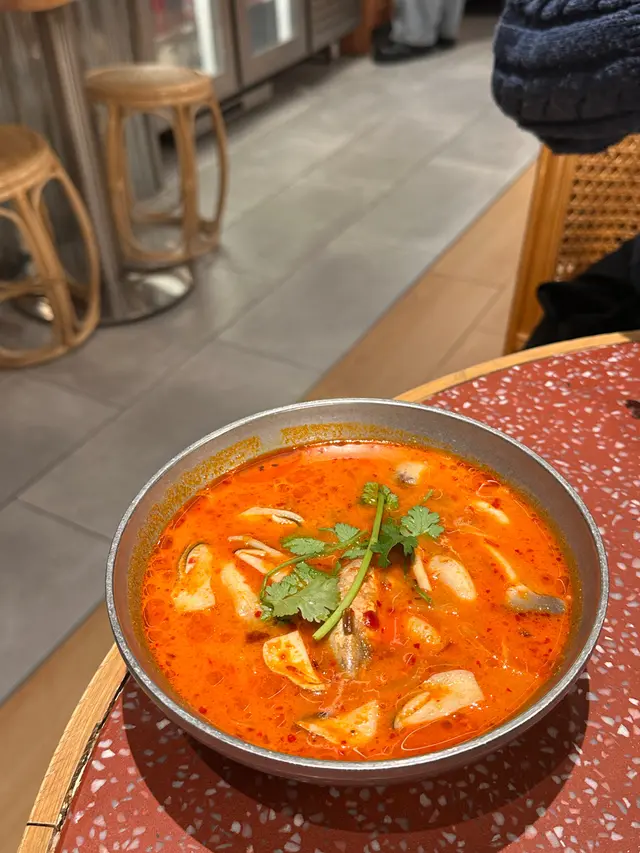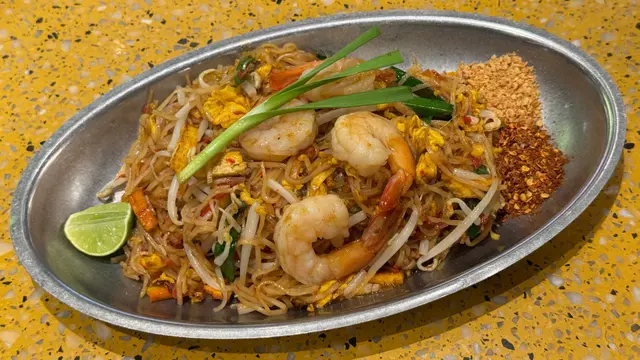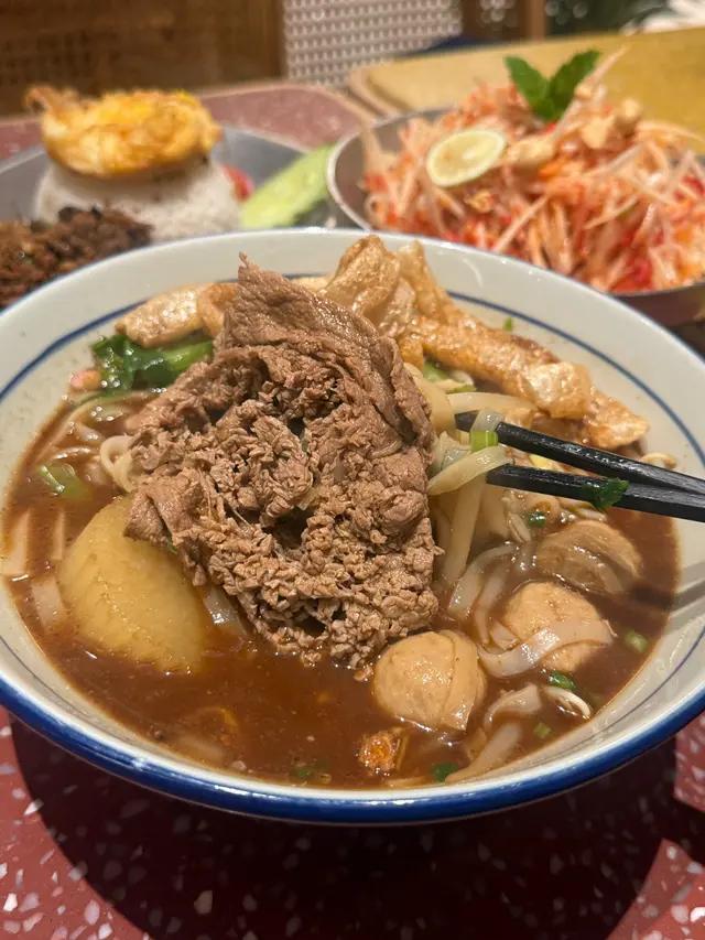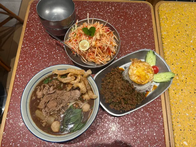 睇戲前試咗呢間味道唔錯嘅泰國菜,服務好而且價錢都算抵,兩個人每人都只係$110,尖沙咀高級商場入面係講算係非常理想。我哋叫咗兩樣嘢食同埋一杯飲品,呢個就係第一款泰式鳳尾蝦炒金邊粉,$88,有4、5隻鳳尾蝦,而且都算新鮮(雖然都知應該係雪藏貨),個金邊粉炒得幾香。另外叫咗一碗泰式船湯河,$78,入面有牛丸、肉片同埋炸豬皮,個湯好香椰汁味,整體幾好食。飲品就試咗佢嘅菠蘿沙冰,$38,唔係好甜,都唔錯。…查看更多