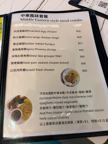 Short Story: Really nice, simple middle Eastern food, very good service, comfortable and not crowded. Please give it a try. Long Story: We've been wanting to try this restaurant for a long time and today we finally made it. I wish we'd come sooner! We've only seen it crowded at lunch a few times but today it was not, so that's why we were able to relax and enjoy our time there. Welcome in by the Uncle Waiter who was friendly. Ordered through the app. Ads in the ordering app are kind of annoying, please get rid of these, guys! I'm already your customer and I want to get to ordering! We order the lamb and beef hummus, the beef hummus, and the extra large chicken leg/thigh. Soup comes with it, it's a very nice, basic tomato soup which it very nicely seasoned and just hot enough and not overly salty or oily, as Western soups can sometimes be. I liked this a lot. The soup came fast and the main dishes came shortly after we finished the soup. Great service detail! To me, the lamb beef hummus was PHENOMENAL. Portion is not huge, but definitely not small, as many places do that these days. Could have been more hummus, though, as it really matches the meat and vegetables. Meat is almost perfectly cooked. I say almost because the beef is a tiny bit over but I'm not complaining. The seasoning is really nice. I've not a pro palate, but this tasted fabulous to me. Excellent work, guys! The beef hummus was a little bit over salty, and maybe there's some vinegar in the sauce? But it was nice that Mrs. Charlie did finish it. The chicken was for my daughter, Charlie Jr. Its just a fried chicken thigh leg, but... It wasn't greasy at all. This part was really good, guys, a simple thing like that is great. Drinks were OK. The Apple ginger drink they cut a little heart shape in the aoole which is a very nice touch, and the drink has strong ginger but not too sweet for really nice balance. Milk tea was... a bit too milky. The coffee tea (yin yeung) had strong coffee taste but tea was not strong. The balance of these two drinks was only OK and not great. Uncle Waiter was doing a good job helping the other customers with friendly conversations we heard and giving helpful tips. No rush to leave or time limits or anything so we can talk while Charlie Jr. is drawing pictures in her book. To sum up, I'll definitely be back to try more dishes. the hummus, a simple dish, was done simply fabulously and it was one of the best dishes I've eaten in many years. Really that good in my humble opinion. Thanks, guys! …查看更多