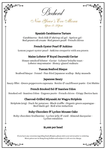 我成日都话,一餐完美嘅饭,唔单止食物要出色,环境同气氛都系灵魂所在!而今次去嘅Bochord,就系一间将呢三样嘢都做到极致嘅地方!💯闯入哈利波特嘅魔法书室 🪄📚一踏入餐厅,我真系「哗」咗一声!🤯 成排高到上天花板嘅书柜,昏黄而温暖嘅灯光,配上深色嘅皮制座椅,成个环境就好似走咗入欧洲嘅古典图书馆,又或者系电影《哈利波特》入面嘅交谊厅!每张枱上都有烛光摇曳🕯️,气氛浪漫到晕。仲有绝美维港海景🌃,今次庆祝生日拣呢度,真系仪式感满分!艺术品级嘅Tasting Menu 🎨好,入正题!我哋今次食嘅系佢哋嘅Tasting Menu,每一道菜都睇得出厨师嘅功架同心机。🌟 前菜三重奏: