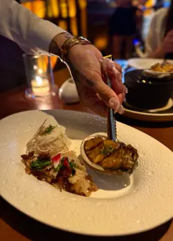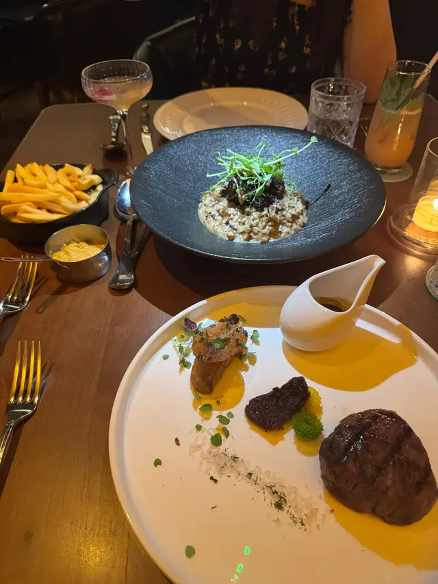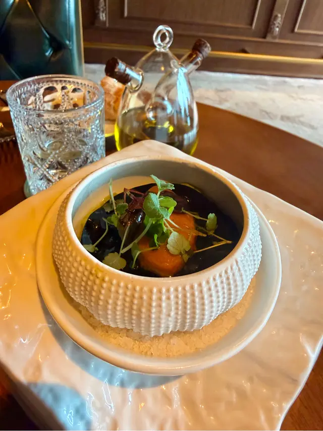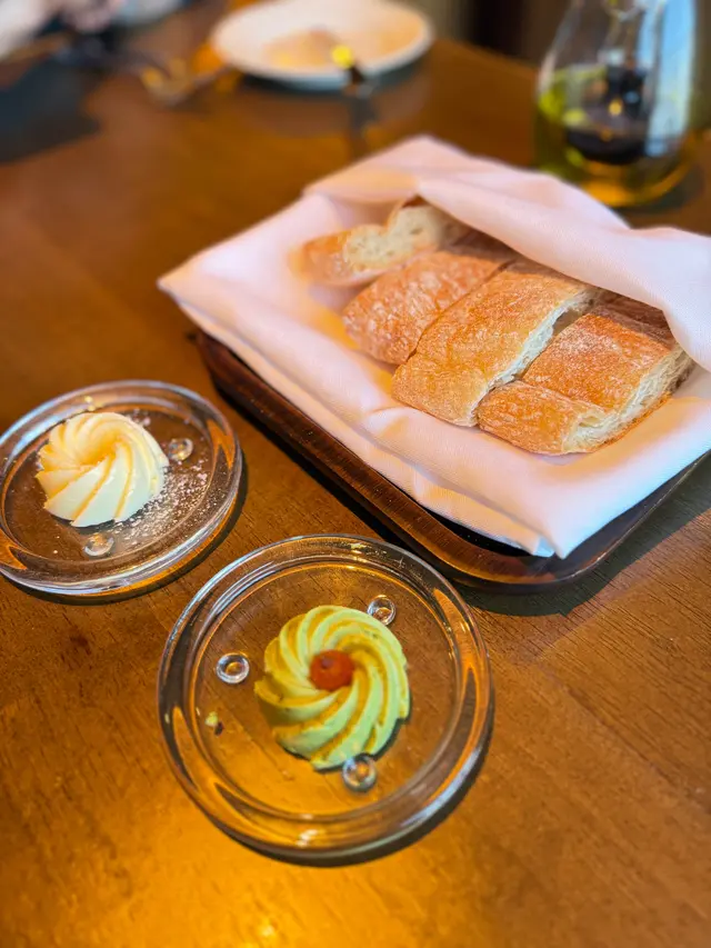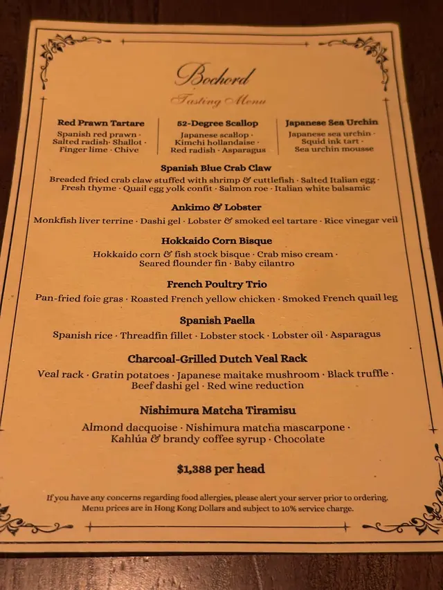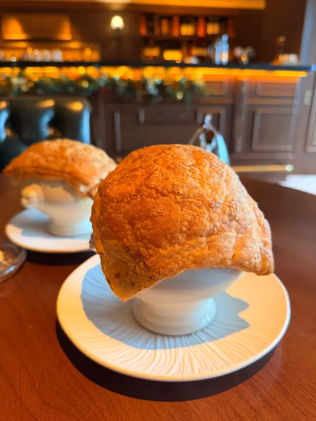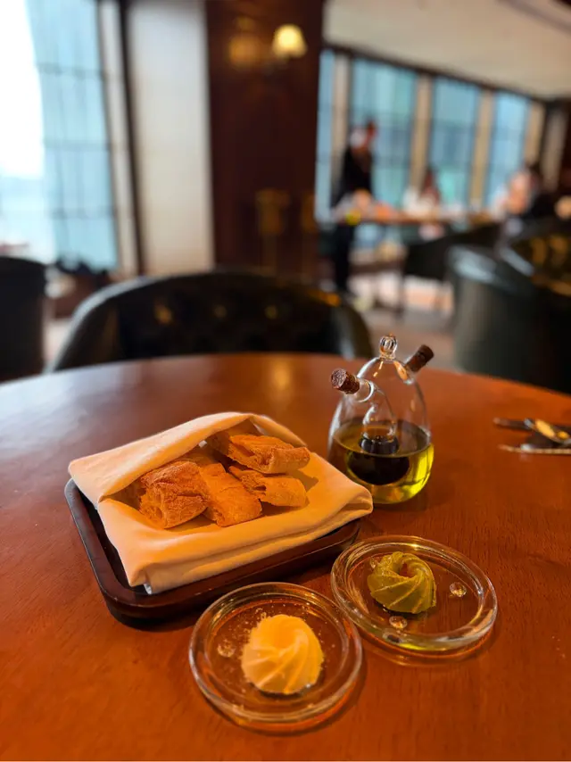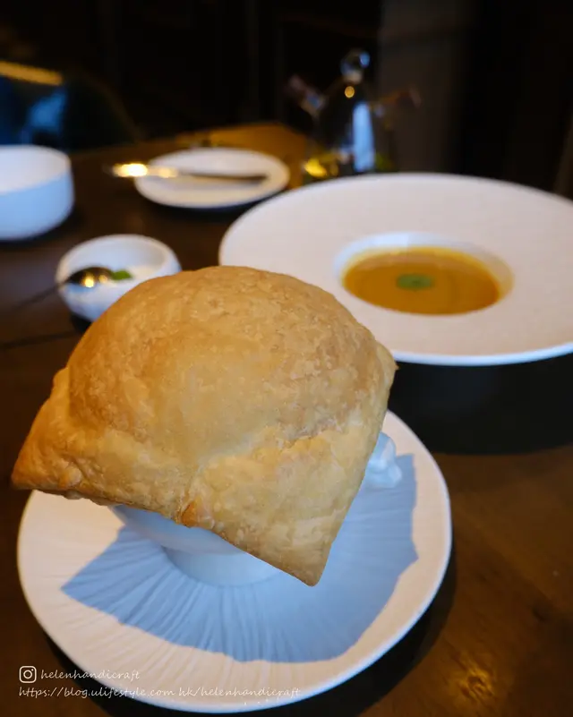 在這個充滿文藝氣息的餐廳,Bochord如同一座藏書室,讓人不禁感到時光倒流,彷彿置身於上世紀歐陸貴族的私人書室。胡桃木的溫暖色調、古典方格紋的天花板,加上墨綠真皮沙發和復古百褶燈,無不散發出低調卻優雅的氛圍。坐在窗旁,隨著維多利亞港的美景,享用美食的同時,耳邊還有現場樂隊的悠揚音樂,讓每一口都更加美味。。侍應先送上一份法式麵包。。📌龍蝦酥皮濃湯 - $138Lobster Bisque with Puff Pastry這道龍蝦濃湯簡直是滋味的極致享受!濃郁的湯頭中,隱約可以嚐到海洋的鮮美,搭配著香脆的酥皮,彷彿每一口都是對味蕾的奢華款待。冬日裡,這碗湯絕對是暖心又暖胃的選擇。。📌日本舞茸蘑菇燉飯(素食)- $258Japanese Maitake Mushroom Risotto – (Vegetarian)如果你是素食者,這道舞茸蘑菇燉飯不容錯過!輕煙熏的黑舞茸與季節性松露蘑菇的完美融合,搭配意大利乾香菇高湯,讓這道燉飯充滿層次感。每一口都香氣四溢,讓人不禁想要多來幾口,真是素食中的絕佳選擇。。📌烏拉圭200天穀飼牛肉 - $438Uruguay 200 Days Grain Fed Beef - Tenderloin 180g當然,肉食愛好者的你也不能錯過這道烏拉圭穀飼牛肉。180克的嫩肩牛排,肉質鮮嫩多汁,搭配濃郁的牛肉德米醬,簡直讓人無法抗拒。這份肉品的來源可追溯到南美洲,200天的穀飼過程,讓牛肉更加美味,真是肉食者的夢想!。📌配菜:自家製薯條 - $58Housemade Fries - $58這份自家製薯條也很值得一試,外脆內軟,口感恰到好處,無論是搭配濃湯還是牛肉,都能完美提升整體用餐體驗。。📌無酒精雞尾酒 - $88 (杯)🍹Alger – Housemade 24 hpurs Cold Brew Lychee Tea, Mango Syrup🍹Patten – Pink Guava, Lime Cordial, Mint, Soda Water。最後,別忘了點一杯無酒精雞尾酒來解渴!Alger的冷萃荔枝茶搭配芒果糖漿,清新可口;而Patten則是粉紅番石榴、青檸、薄荷和蘇打水的完美結合,讓你在享受美食的同時,也能感受到一絲清新的氣息。。Bochord不僅是享受美食的地方,更是一次視覺與味覺的盛宴。每一道菜都彷彿在講述一個故事,而這個故事,無疑是關於美味、舒適與浪漫的。。…查看更多